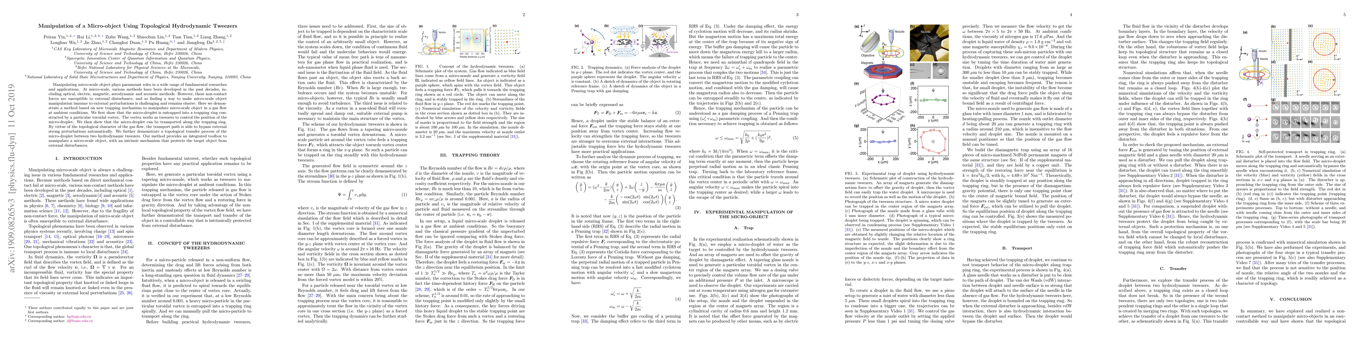 Researchers have developed a method to manipulate micro-scale objects using topological hydrodynamic tweezers, which can transport objects through gas flows at ambient conditions without external disturbance.