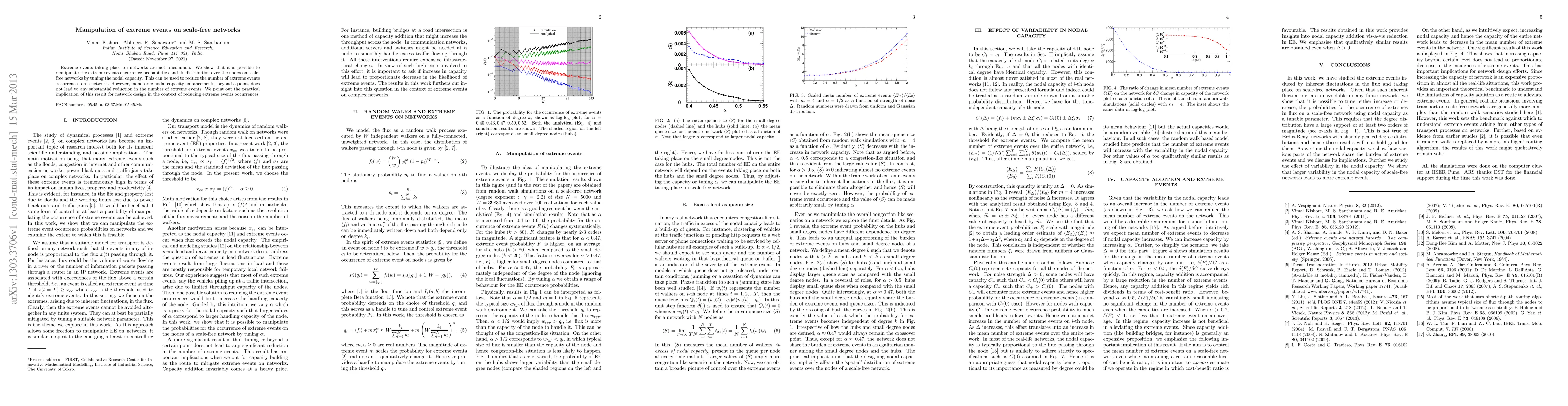 This paper demonstrates that extreme events on scale-free networks can be manipulated by adjusting nodal capacity, effectively reducing their occurrence. However, beyond a certain point, further enhancements in nodal capacity yield minimal additional benefits.