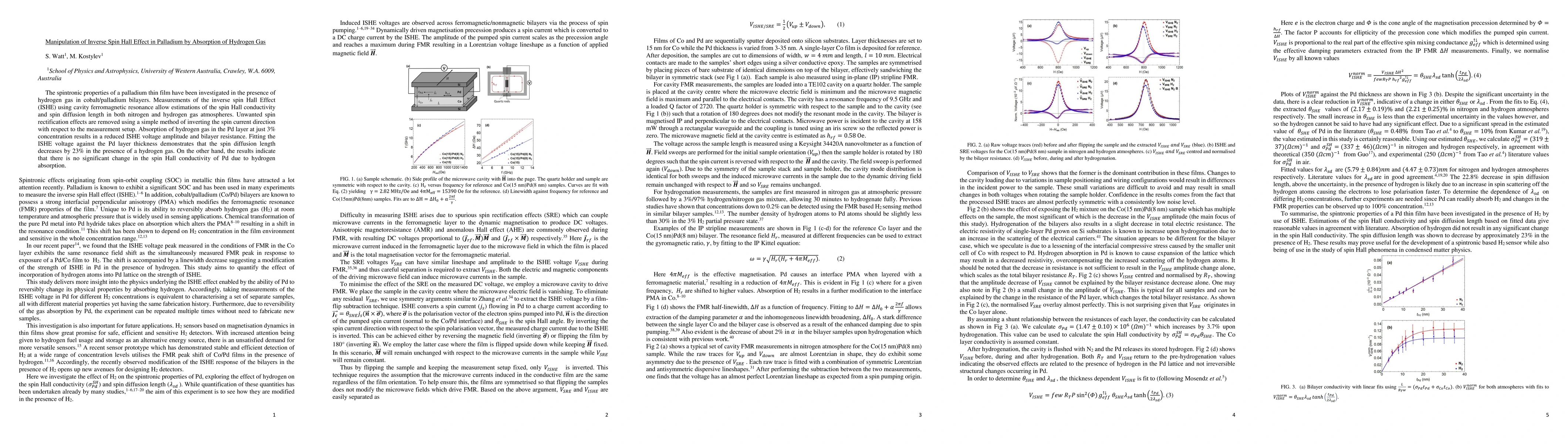 This study investigates the inverse spin Hall effect (ISHE) in cobalt/palladium bilayers under hydrogen gas exposure, revealing a 23% decrease in spin diffusion length with 3% hydrogen concentration, while spin Hall conductivity remains unaffected. The reduced ISHE voltage and bilayer resistance highlight the impact of hydrogen on Pd's spintronic properties.