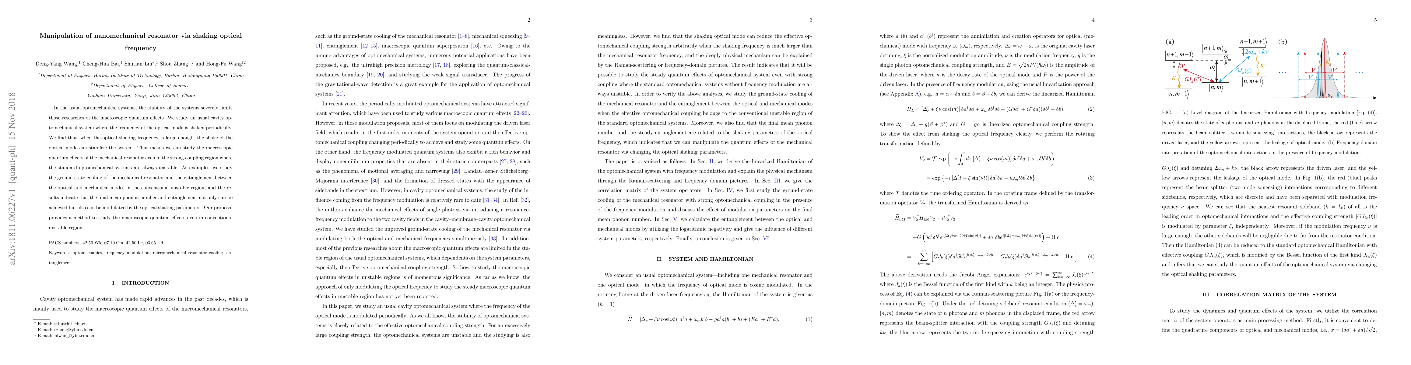 Researchers developed a method to stabilize an optomechanical system by shaking its optical frequency, allowing for the study of macroscopic quantum effects in a previously unstable region. This enables the control of phonon number and entanglement between modes.