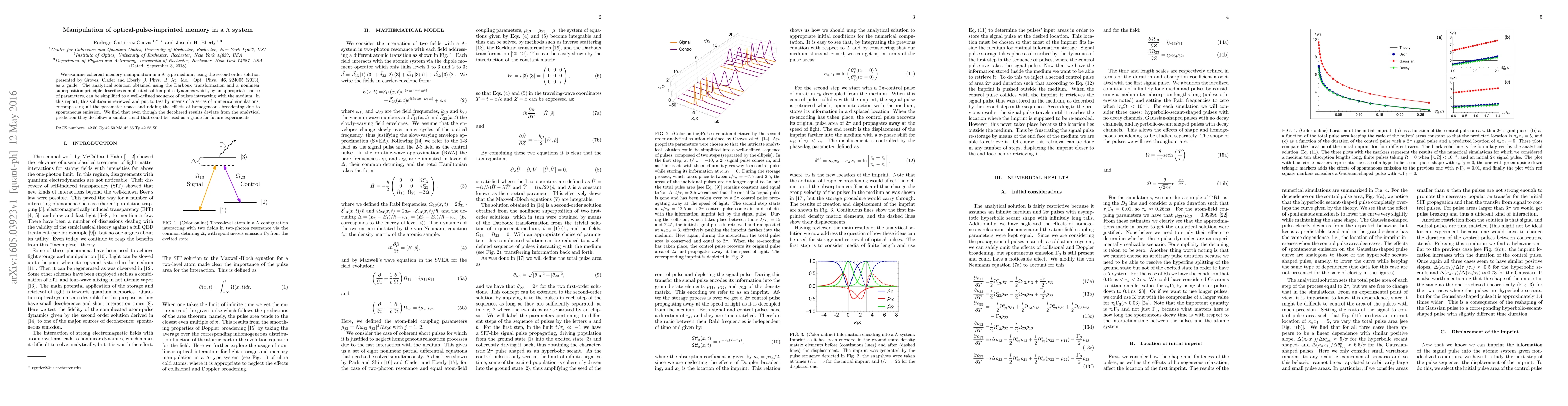 We examine coherent memory manipulation in a $\Lambda$-type medium, using the second order solution presented by Groves, Clader and Eberly [J. Phys. B: At. Mol. Opt. Phys. 46, 224005 (2013)] as a guide. The analytical solution obtained using the Darboux transformation and a nonlinear superposition principle describes complicated soliton-pulse dynamics which, by an appropriate choice of parameters, can be simplified to a well-defined sequence of pulses interacting with the medium. In this report, this solution is reviewed and put to test by means of a series of numerical simulations, encompassing all the parameter space and adding the effects of homogeneous broadening due to spontaneous emission. We find that even though the decohered results deviate from the analytical prediction they do follow a similar trend that could be used as a guide for future experiments.