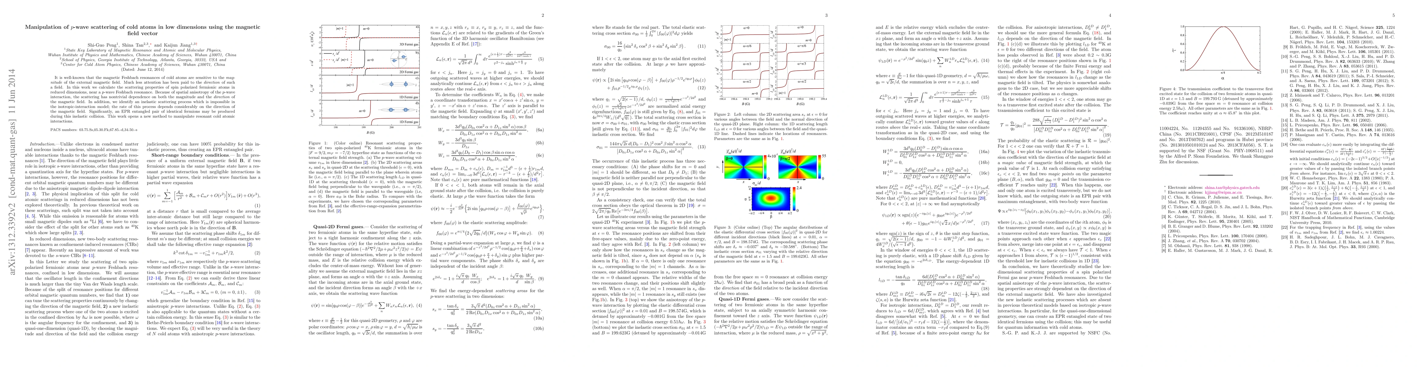 It is well-known that the magnetic Feshbach resonances of cold atoms are sensitive to the magnitude of the external magnetic field. Much less attention has been paid to the direction of such a field. In this work we calculate the scattering properties of spin polarized fermionic atoms in reduced dimensions, near a p-wave Feshbach resonance. Because of spatial anisotropy of the p-wave interaction, the scattering has nontrivial dependence on both the magnitude and the direction of the magnetic field. In addition, we identify an inelastic scattering process which is impossible in the isotropic-interaction model; the rate of this process depends considerably on the direction of the magnetic field. Significantly, an EPR entangled pair of identical fermions may be produced during this inelastic collision. This work opens a new method to manipulate resonant cold atomic interactions.