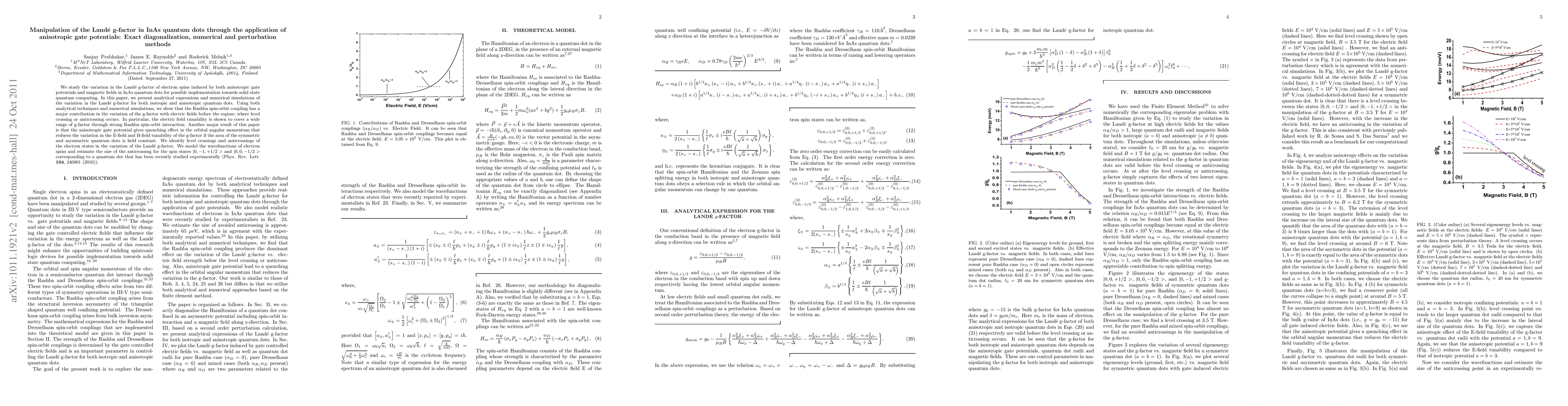 This paper investigates the manipulation of the Landé g-factor in InAs quantum dots via anisotropic gate potentials and magnetic fields, crucial for quantum computing applications. It demonstrates that the Rashba spin-orbit coupling significantly alters the g-factor with electric fields, while anisotropic gate potentials reduce the tunability of the g-factor by quenching orbital angular momentum.