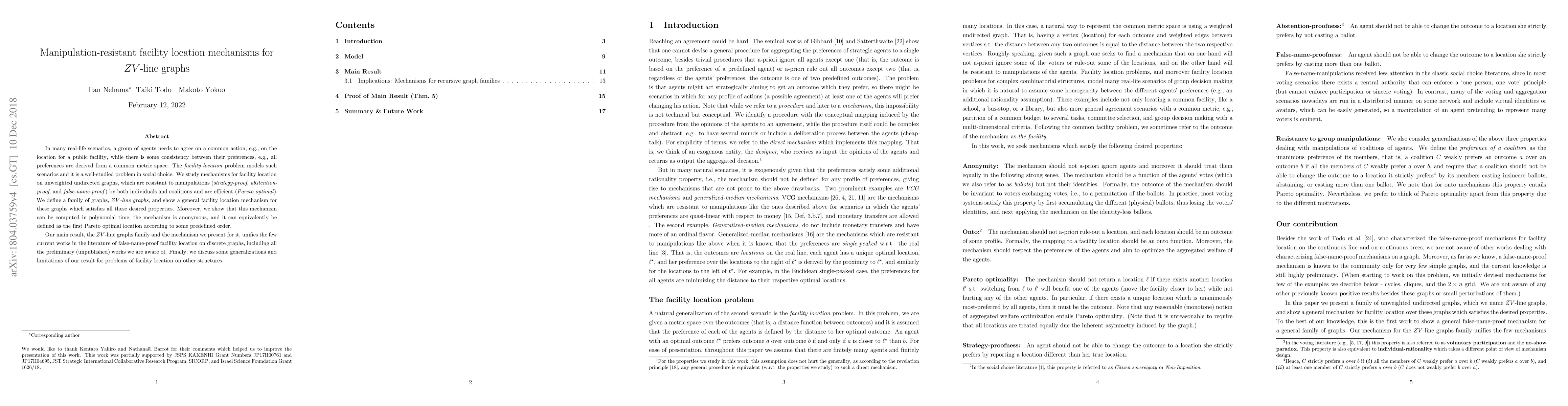 This research develops a manipulation-resistant, efficient facility location mechanism for ZV-line graphs that is strategy-proof, abstention-proof, and false-name-proof. The proposed mechanism is polynomial-time computable, anonymous, and equivalent to the first Pareto optimal location according to a predefined order.
