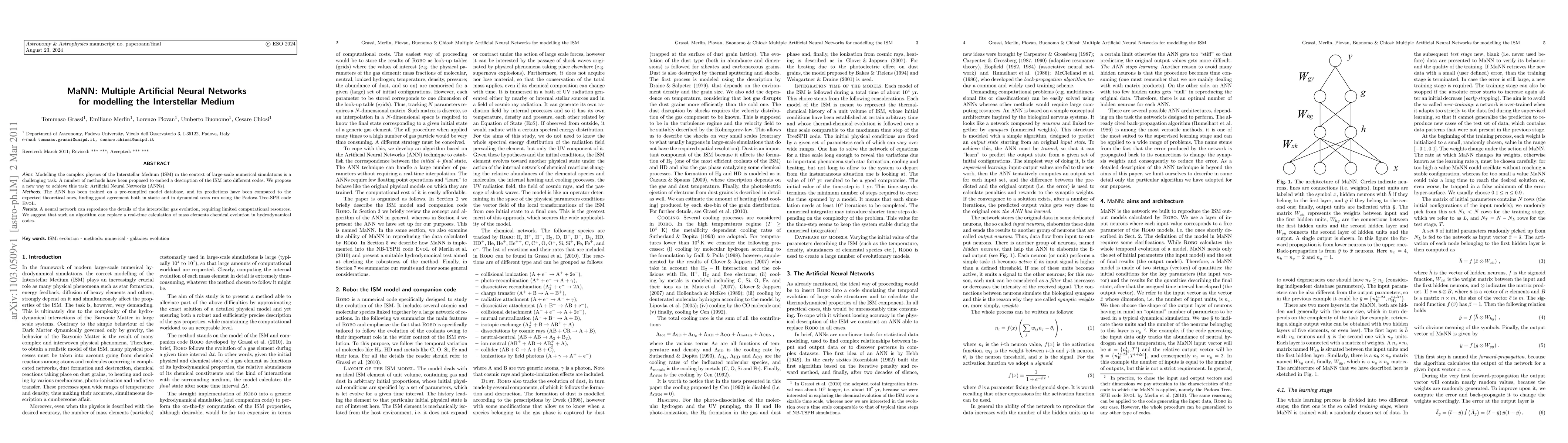 The paper proposes using Multiple Artificial Neural Networks (MaNN) to model the Interstellar Medium (ISM) in large-scale simulations, trained on a pre-compiled database, and demonstrates good agreement with theoretical predictions. The neural network approach offers a computationally efficient alternative to real-time calculations of ISM evolution in hydrodynamical codes.