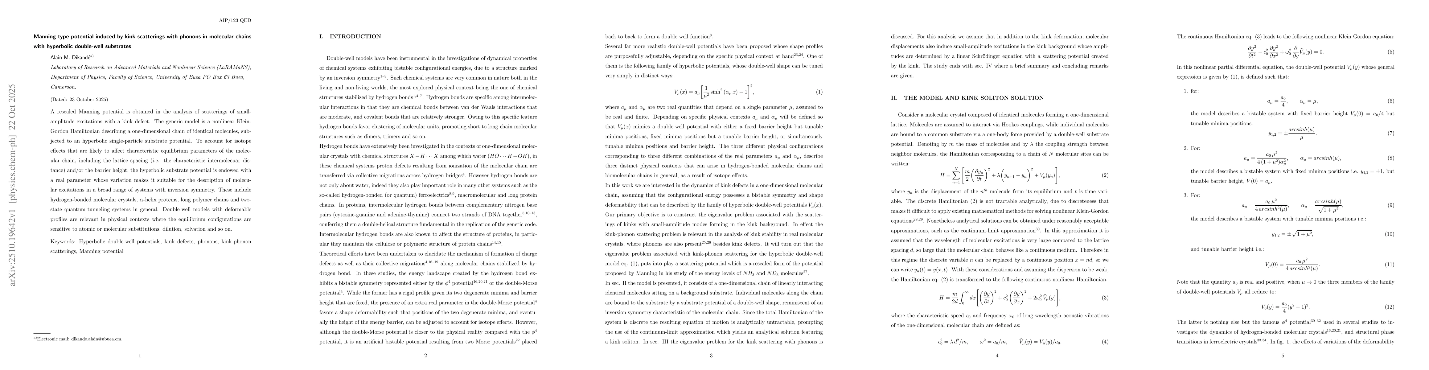 A rescaled Manning potential is obtained in the analysis of scatterings of small- amplitude excitations with a kink defect. The generic model is a nonlinear Klein- Gordon Hamiltonian describing a one-dimensional chain of identical molecules, sub- jected to an hyperbolic single-particle substrate potential. To account for isotope effects that are likely to affect characteristic equilibrium parameters of the molec- ular chain, including the lattice spacing (i.e. the characteristic intermolecuar dis- tance) and/or the barrier height, the hyperbolic substrate potential is endowed with a real parameter whose variation makes it suitable for the description of molecu- lar excitations in a broad range of systems with inversion symmetry. These include hydrogen-bonded molecular crystals, {\alpha}-helix proteins, long polymer chains and two- state quantum-tunneling systems in general. Double-well models with deformable profiles are relevant in physical contexts where the equilibrium configurations are sensitive to atomic or molecular substitutions, dilution, solvation and so on.