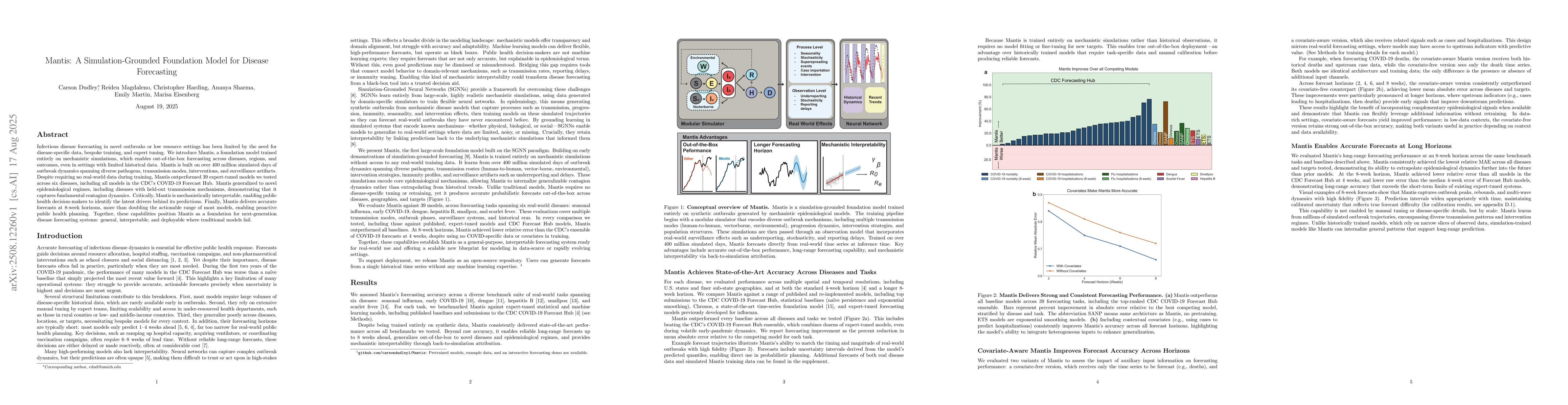 Infectious disease forecasting in novel outbreaks or low resource settings has been limited by the need for disease-specific data, bespoke training, and expert tuning. We introduce Mantis, a foundation model trained entirely on mechanistic simulations, which enables out-of-the-box forecasting across diseases, regions, and outcomes, even in settings with limited historical data. Mantis is built on over 400 million simulated days of outbreak dynamics spanning diverse pathogens, transmission modes, interventions, and surveillance artifacts. Despite requiring no real-world data during training, Mantis outperformed 39 expert-tuned models we tested across six diseases, including all models in the CDC's COVID-19 Forecast Hub. Mantis generalized to novel epidemiological regimes, including diseases with held-out transmission mechanisms, demonstrating that it captures fundamental contagion dynamics. Critically, Mantis is mechanistically interpretable, enabling public health decision-makers to identify the latent drivers behind its predictions. Finally, Mantis delivers accurate forecasts at 8-week horizons, more than doubling the actionable range of most models, enabling proactive public health planning. Together, these capabilities position Mantis as a foundation for next-generation disease forecasting systems: general, interpretable, and deployable where traditional models fail.