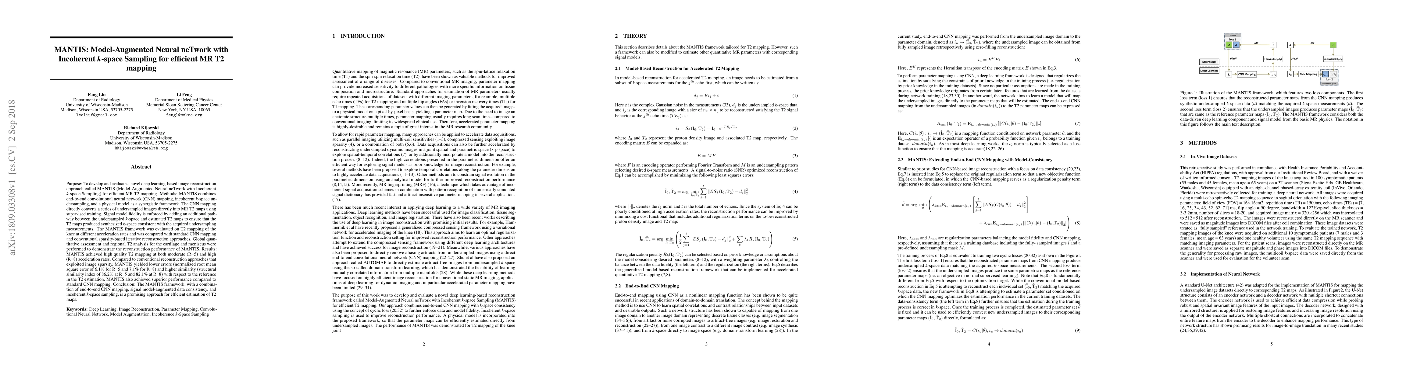 The paper introduces MANTIS, a deep learning-based framework combining CNN mapping with k-space consistency for efficient MR T2 mapping. MANTIS leverages incoherent k-space sampling and a physical model to accelerate parameter mapping, achieving lower errors and higher similarity to reference T2 maps compared to conventional methods.