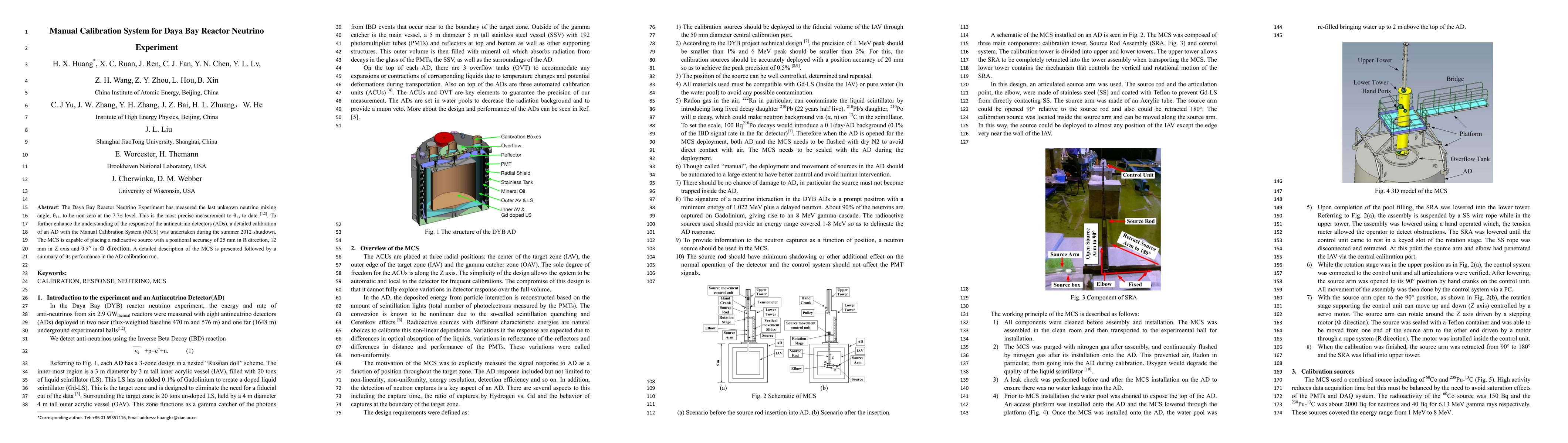 Researchers developed a manual calibration system to improve the accuracy of Daya Bay Reactor Neutrino Experiment's antineutrino detectors. The system achieved precise placement of radioactive sources with high accuracy.