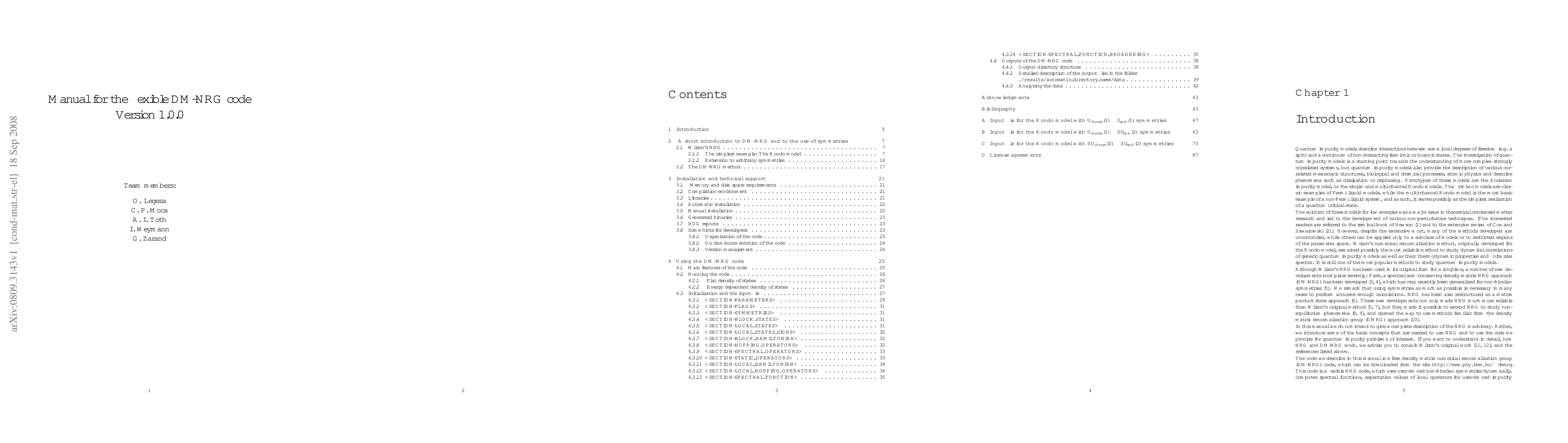 Quantum impurity models describe interactions between some local degrees of freedom and a continuum of non-interacting fermionic or bosonic states. The investigation of quantum impurity models is a starting point towards the understanding of more complex strongly correlated systems, but quantum impurity models also provide the description of various correlated mesoscopic structures, biological and chemical processes, atomic physics and describe phenomena such as dissipation or dephasing. Prototypes of these models are the Anderson impurity model, or the single- and multi-channel Kondo models. The numerical renormalization group method (NRG) proposed by Wilson in mid 70's has been used in its original form for a longtime as one of the most accurate and powerful methods to deal with quatum impurity problems. Recently, a number of new developments took place: First, a spectral sum-conserving density matrix NRG approach (DM-NRG) has been developed, which has also been generalized for non-Abelian symmetries. In this manual we introduce some of the basic concepts of the NRG method and present recently developed Flexible DM-NRG code. This code uses user-defined non-Abelian symmetries dynamically, computes spectral functions, expectation values of local operators for user-defined impurity models. The code can also use a uniform density of states as well as a user-defined density of states. The current version of the code assumes fermionic bath's and it uses any number of U(1), SU(2) charge SU(2) or Z(2) symmetries. The Flexible DM-NRG code can be downloaded from http://www.phy.bme.hu/~dmnrg