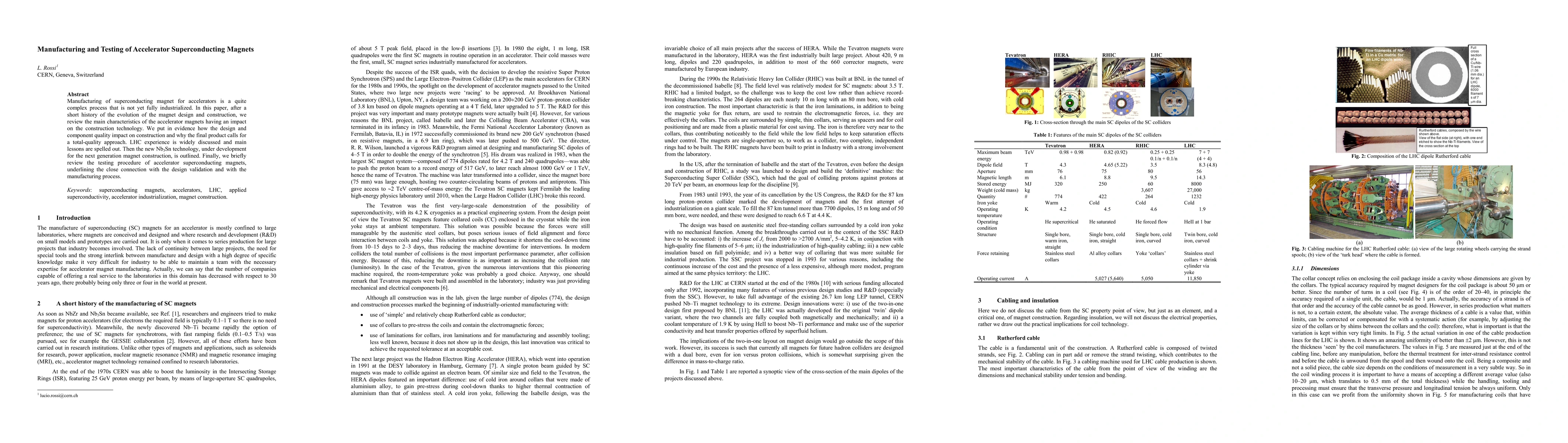 This paper reviews the intricate manufacturing process of superconducting magnets for accelerators, emphasizing the importance of design and component quality for construction. It discusses the lessons learned from the LHC and explores the emerging Nb3Sn technology, alongside the testing procedures that validate design and manufacturing quality.