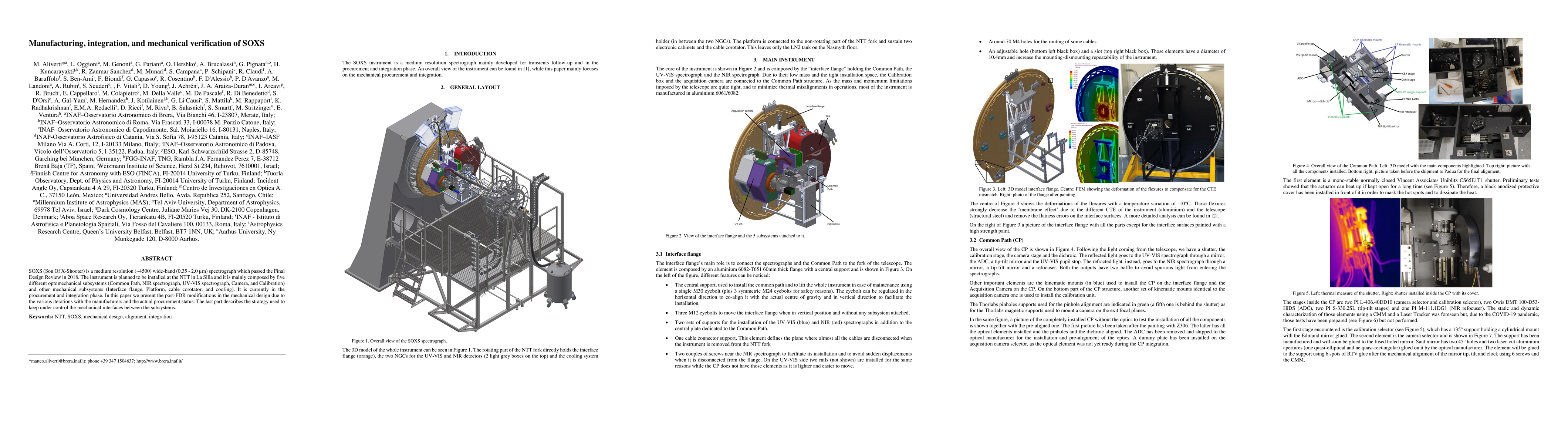 This paper documents the post-Final Design Review modifications to the SOXS spectrograph, a medium resolution instrument for installation at the NTT in La Silla, highlighting its integration progress and mechanical interface control strategies.