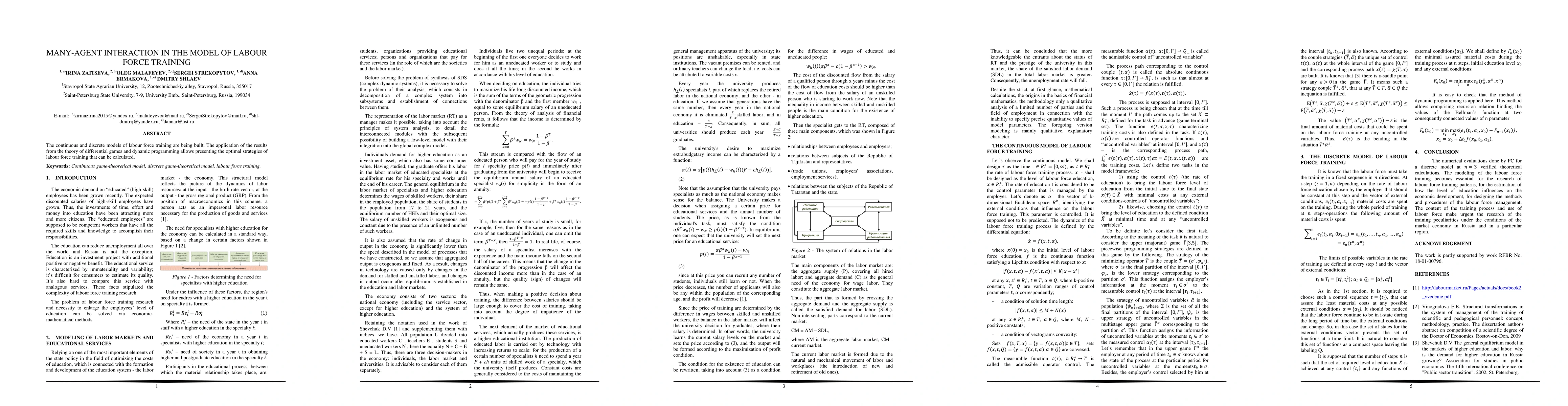 The continuous and discrete models of labour force training are being built. The application of the results from the theory of differential games and dynamic programming allows presenting the optimal strategies of labour force training that can be calculated.