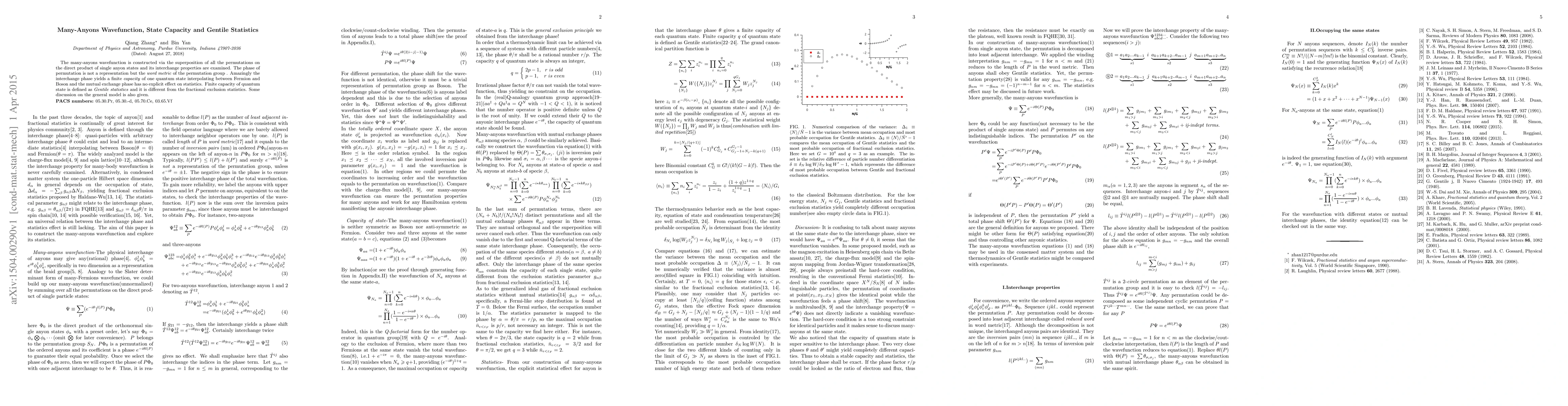 This paper constructs the many-anyons wavefunction through permutations of single anyon states, revealing a finite capacity quantum state termed Gentile statistics, which interpolates between Fermion and Boson behavior without affecting mutual exchange phases. This differs from fractional exclusion statistics.