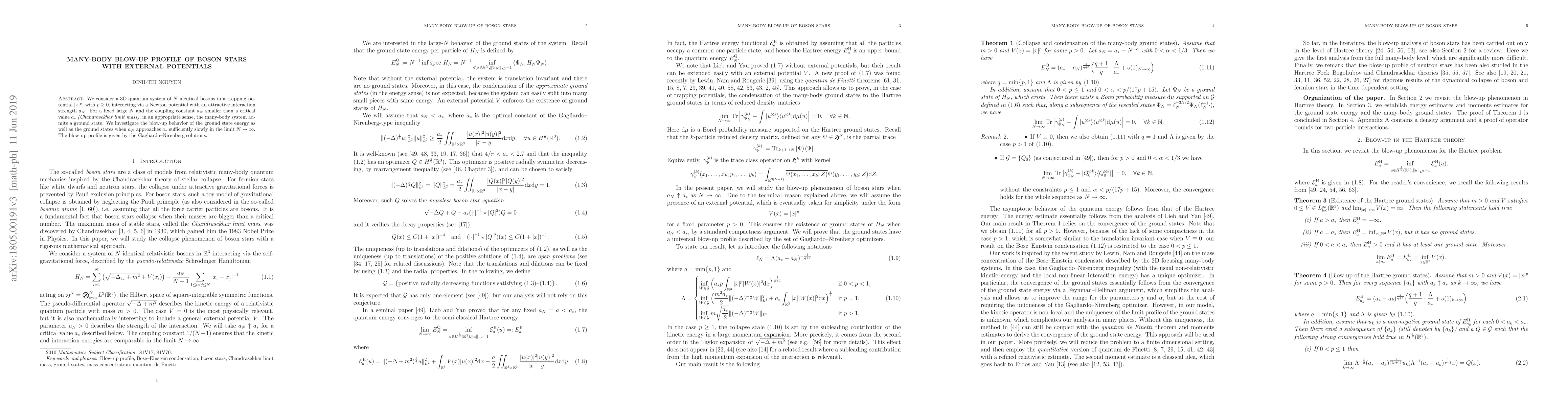 This paper explores the behavior of a large quantum system of $N$ bosons in a trapping potential, focusing on the ground state energy and its blow-up profile as the interaction strength approaches a critical limit. The study reveals the Gagliardo-Nirenberg solutions as the governing profile for the system's behavior.