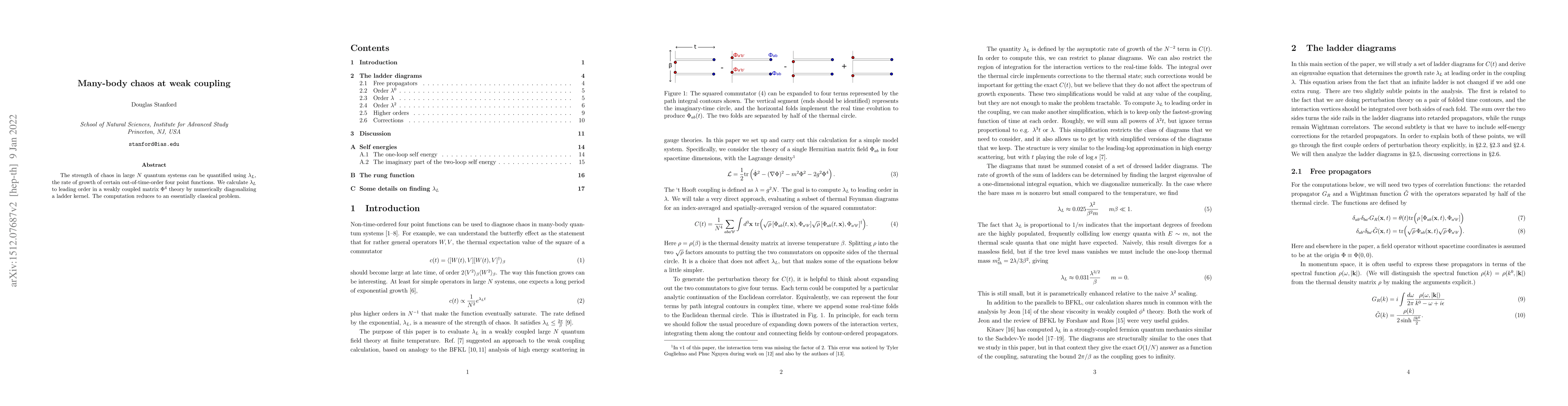 Researchers studied a type of behavior in quantum systems known as many-body chaos at weak coupling, calculating its strength using a new method that reduces to an essentially classical problem. The findings provide insight into the behavior of complex quantum systems.