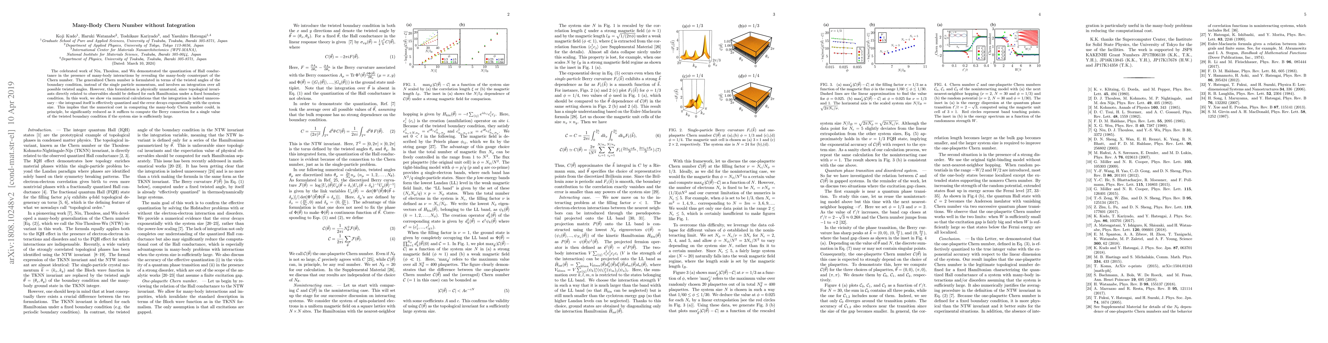 This paper demonstrates that the many-body Chern number, previously requiring integration over twisted angles, can be effectively computed without integration. The authors show numerically that the integrand is quantized and errors decay exponentially with system size, suggesting a significant reduction in computational cost.