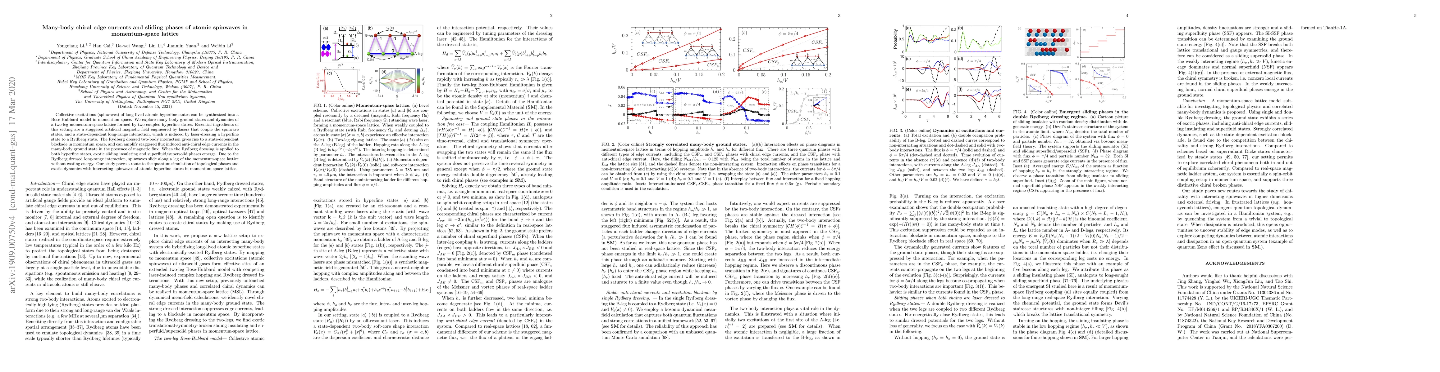 This paper investigates the many-body dynamics of spinwaves in a two-leg momentum-space lattice formed by coupled atomic hyperfine states, revealing chiral edge currents and sliding phases enabled by engineered magnetic fields and Rydberg-dressed long-range interactions. The study identifies exotic sliding insulating and superfluid/supersolid phases, offering a pathway for quantum simulation of topological phases.