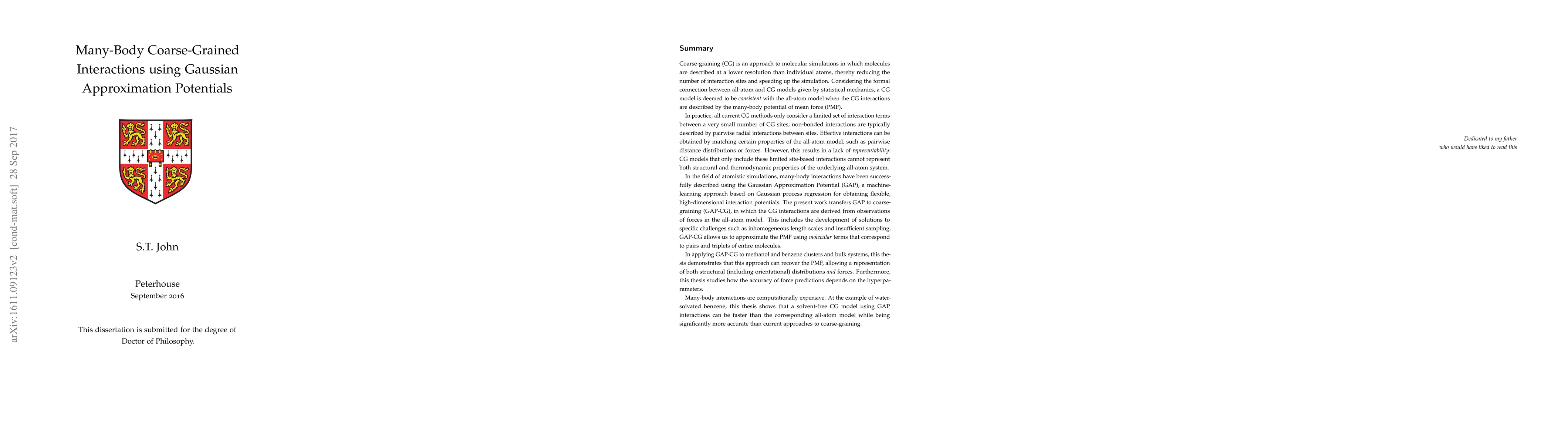 This thesis introduces a framework that is able to describe general many-body coarse-grained interactions. We make use of this to describe the free energy surface as a cluster expansion in terms of monomer, dimer, and trimer terms. The contributions to the free energy due to these terms are inferred from MD results of the underlying all-atom model using Gaussian Approximation Potentials, a type of machine-learning potential based on Gaussian process regression. This provides CG interactions that are much more accurate than is possible with site-based pair potentials. While slower than these, it can still be faster than all-atom simulations for solvent-free CG models of systems with a large amount of solvent, as is common in biomolecular simulations.