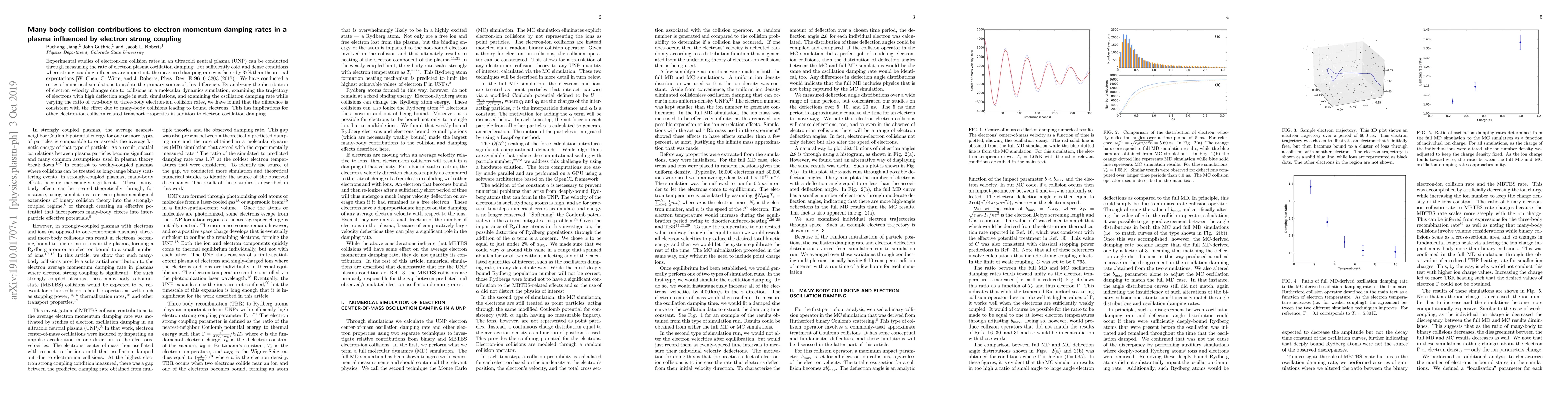 Experimental studies of electron-ion collision rates in an ultracold neutral plasma (UNP) can be conducted through measuring the rate of electron plasma oscillation damping. For sufficiently cold and dense conditions where strong coupling influences are important, the measured damping rate was faster by 37\% than theoretical expectations [W. Chen, C. Witte, and J. Roberts, Phys. Rev. E \textbf{96}, 013203 (2017)]. We have conducted a series of numerical simulations to isolate the primary source of this difference. By analyzing the distribution of electron velocity changes due to collisions in a molecular dynamics simulation, examining the trajectory of electrons with high deflection angle in such simulations, and examining the oscillation damping rate while varying the ratio of two-body to three-body electron-ion collision rates, we have found that the difference is consistent with the effect due to many-body collisions leading to bound electrons. This has implications for other electron-ion collision related transport properties in addition to electron oscillation damping.