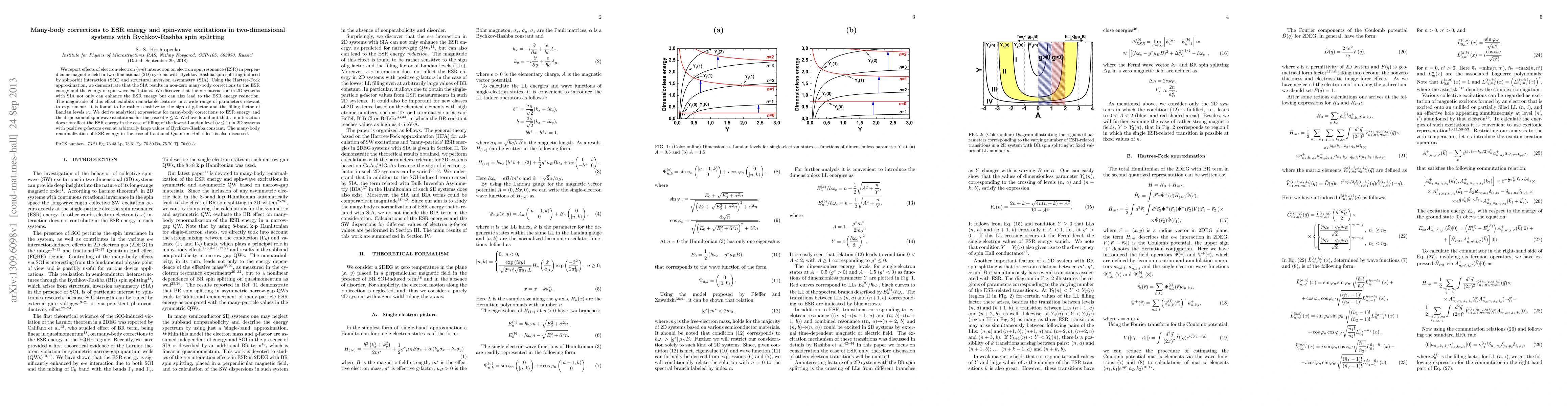 This paper investigates the impact of electron-electron interactions on electron spin resonance (ESR) in two-dimensional systems with Bychkov-Rashba spin splitting. It reveals that structural inversion asymmetry leads to significant many-body corrections to ESR energy and spin wave excitations, with effects varying sensitively with the g-factor and Landau level filling factor.