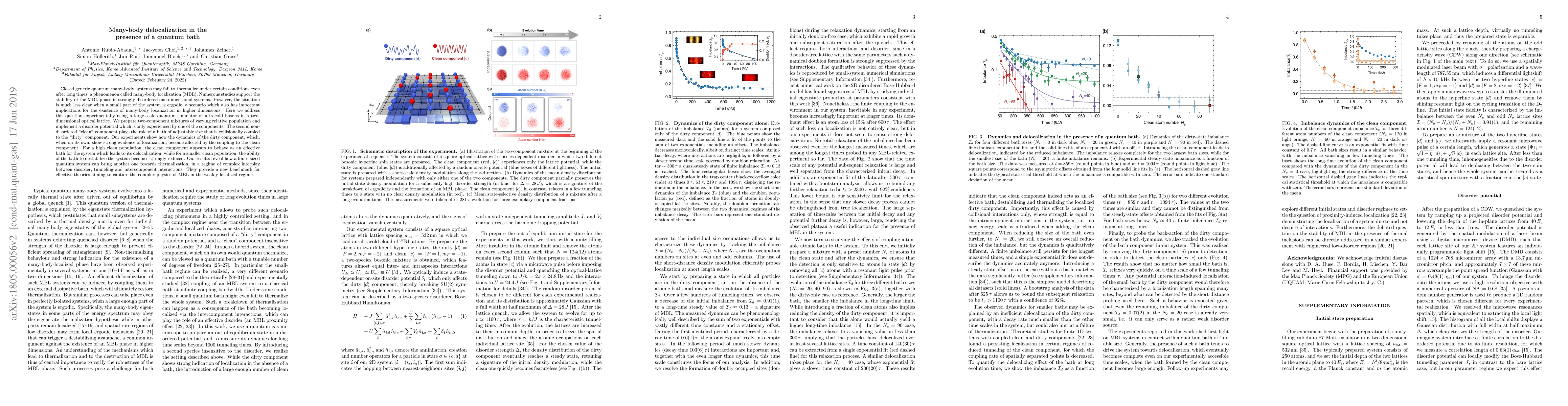 This study experimentally investigates many-body localization (MBL) in a two-dimensional quantum system using a quantum simulator of ultracold bosons. The research reveals that a clean, ergodic component can delocalize a strongly localized component when sufficiently populated, demonstrating the complex interplay between disorder, tunneling, and intercomponent interactions in MBL dynamics.