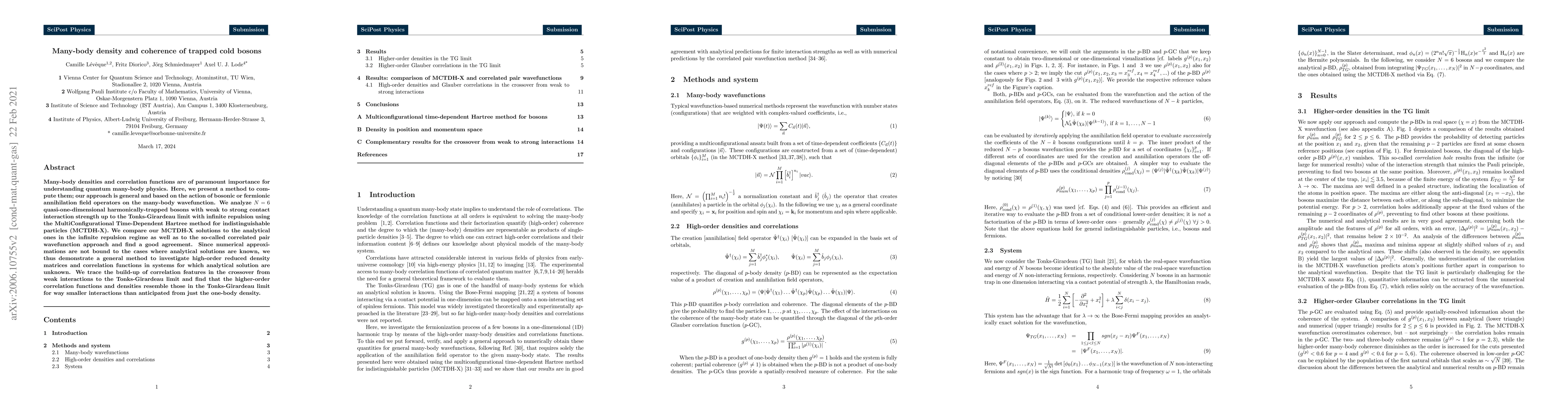This paper presents a method for computing many-body densities and correlation functions in trapped cold bosons using the MCTDH-X approach. It analyzes $N = 6$ quasi-one-dimensional bosons, showing good agreement with analytical solutions and demonstrating the method's applicability to systems without known analytical solutions.