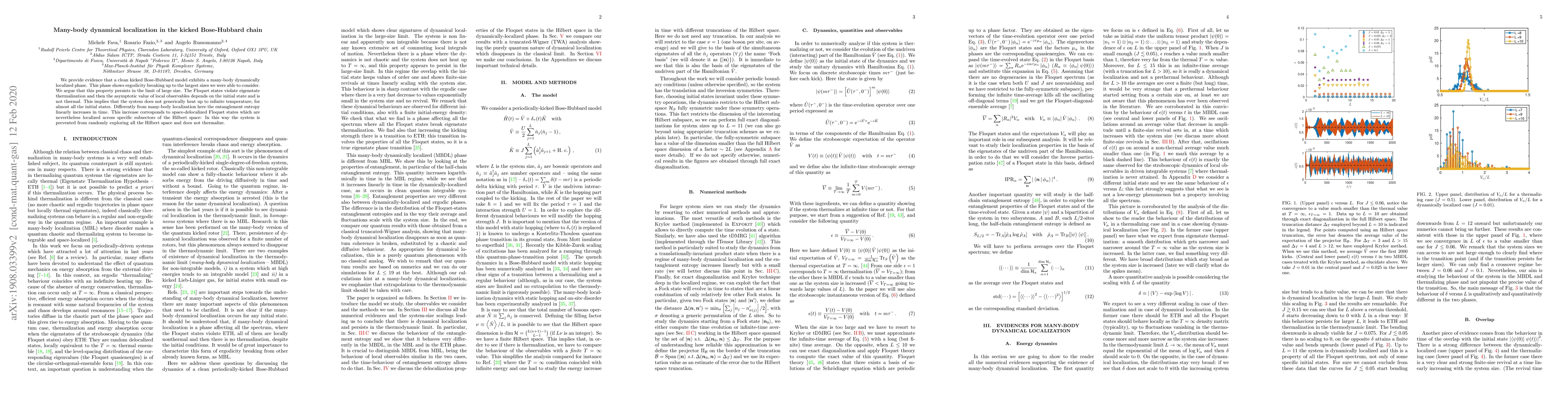 The kicked Bose-Hubbard chain demonstrates a many-body dynamically localized phase, exhibiting ergodicity breaking and non-thermalization of local observables across large systems, despite an increasing entanglement entropy over time. This localization prevents the system from exploring the full Hilbert space and thermalizing, unlike typical many-body localization scenarios.
