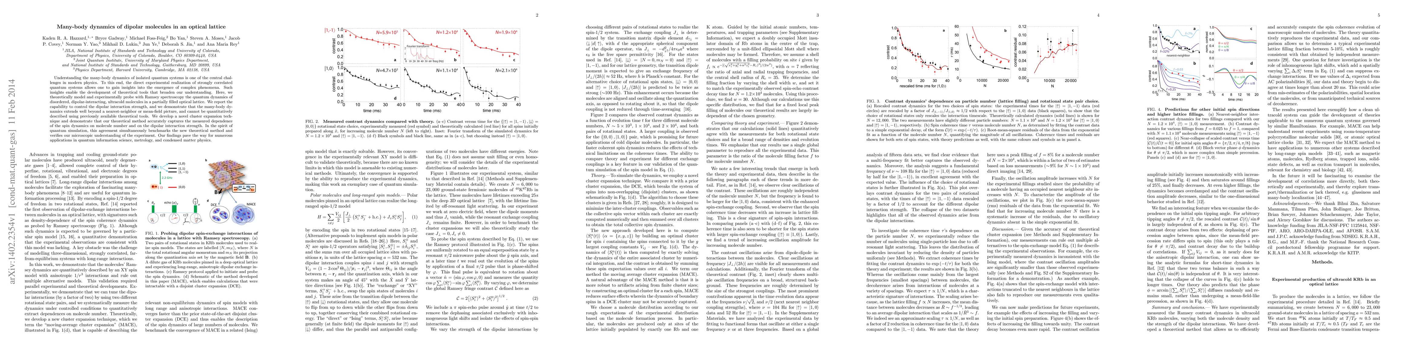 This paper investigates the many-body dynamics of dipolar molecules in an optical lattice, revealing that their quantum dynamics cannot be described by traditional theoretical tools. The authors develop a novel cluster expansion technique that accurately captures the observed spin dynamics, paving the way for applications in quantum information science and condensed matter physics.