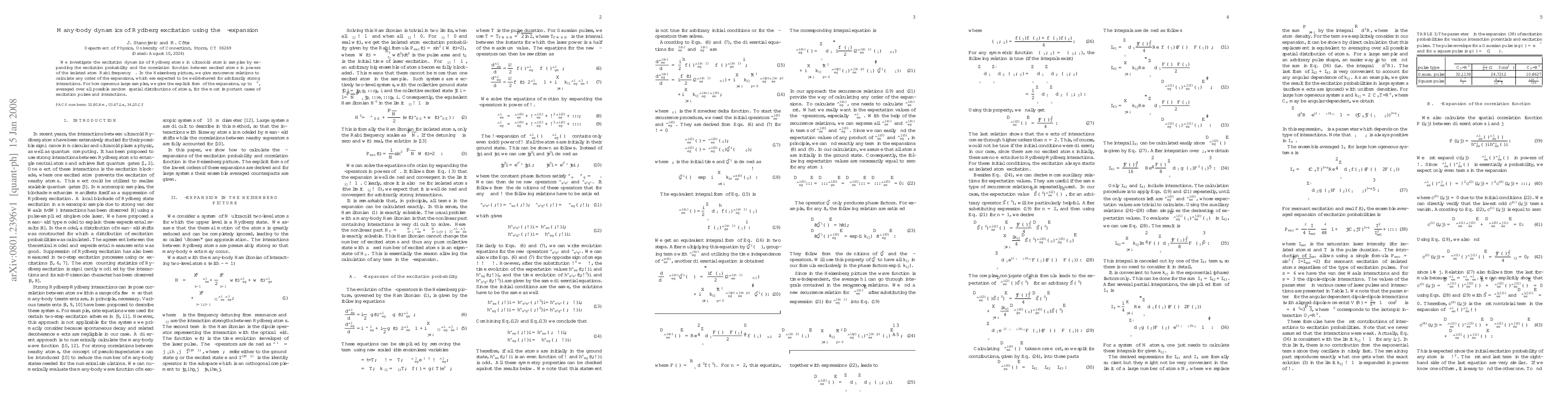 We investigate the excitation dynamics of Rydberg atoms in ultracold atomic samples by expanding the excitation probability and the correlation function between excited atoms in powers of the isolated atom Rabi frequency $\Omega$. In the Heisenberg picture, we give recurrence relations to calculate any order of the expansions, which ere expected to be well-behaved for arbitrarily strong interactions. For homogeneous large samples, we give the explicit form of the expansions, up to $\Omega^4$, averaged over all possible random spatial distributions of atoms, for the most important cases of excitation pulses and interactions.