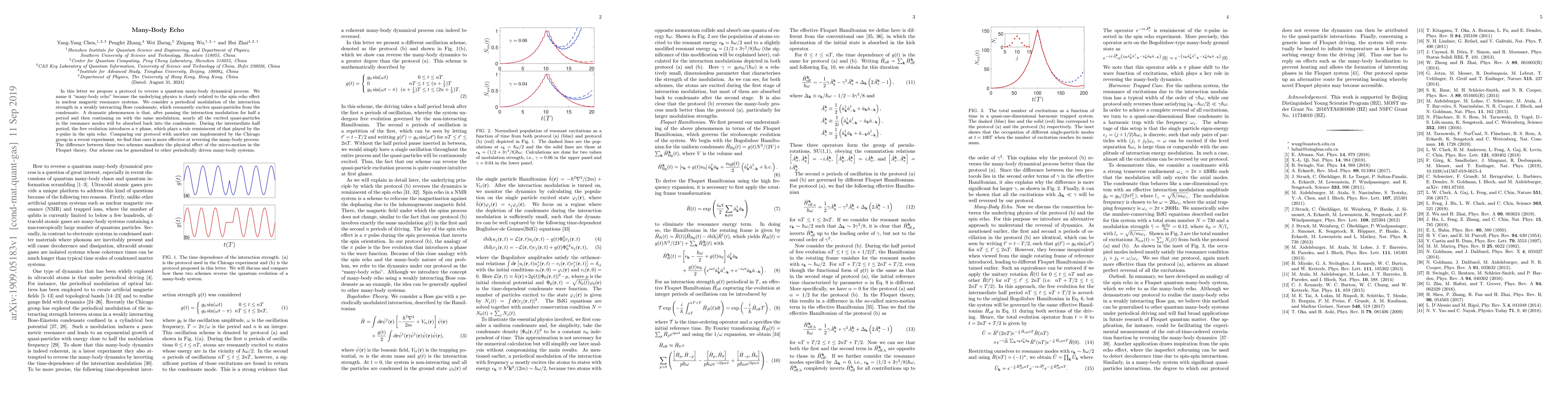 This paper proposes a "many-body echo" protocol to reverse quantum many-body dynamics, analogous to the spin echo effect. It demonstrates that modulating interaction strength in a Bose condensate can nearly reabsorb excited quasi-particles, showcasing a $\pi$ phase effect similar to the $\pi$-pulse in spin echo, and is more effective than a comparable protocol.