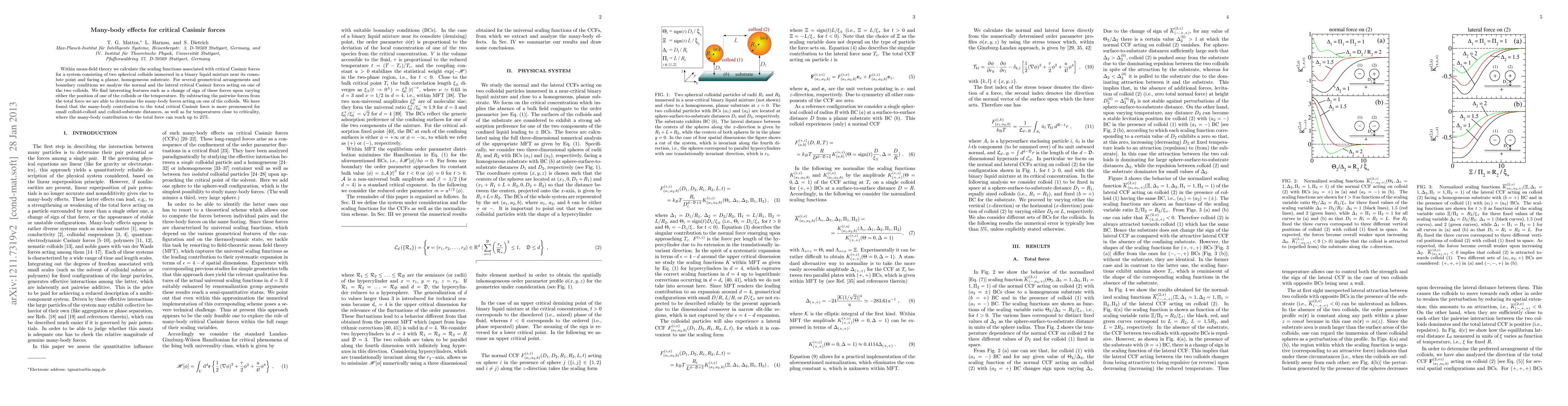This paper investigates critical Casimir forces in a system of two spherical colloids near a consolute point, revealing many-body effects through scaling functions. The many-body contribution to the total force is significant at small distances and near critical temperatures, reaching up to 25%.