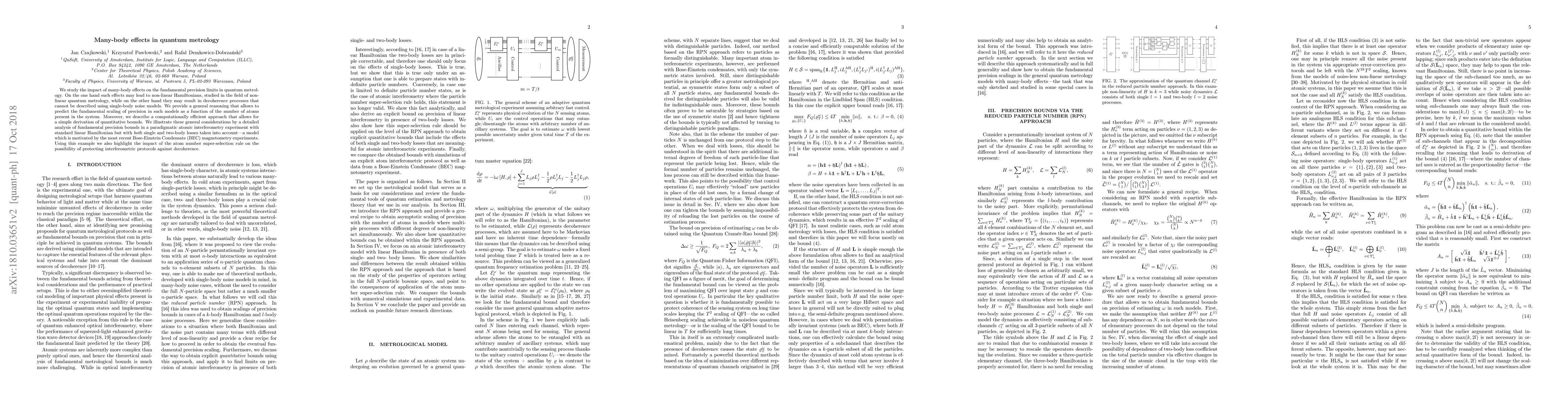 This paper investigates how many-body effects influence the precision limits in quantum metrology, exploring both non-linear Hamiltonians and decoherence processes beyond single-body noise models. It provides a method to predict precision scaling with atom number and applies these insights to a detailed atomic interferometry experiment, highlighting the role of atom number super-selection in mitigating decoherence.