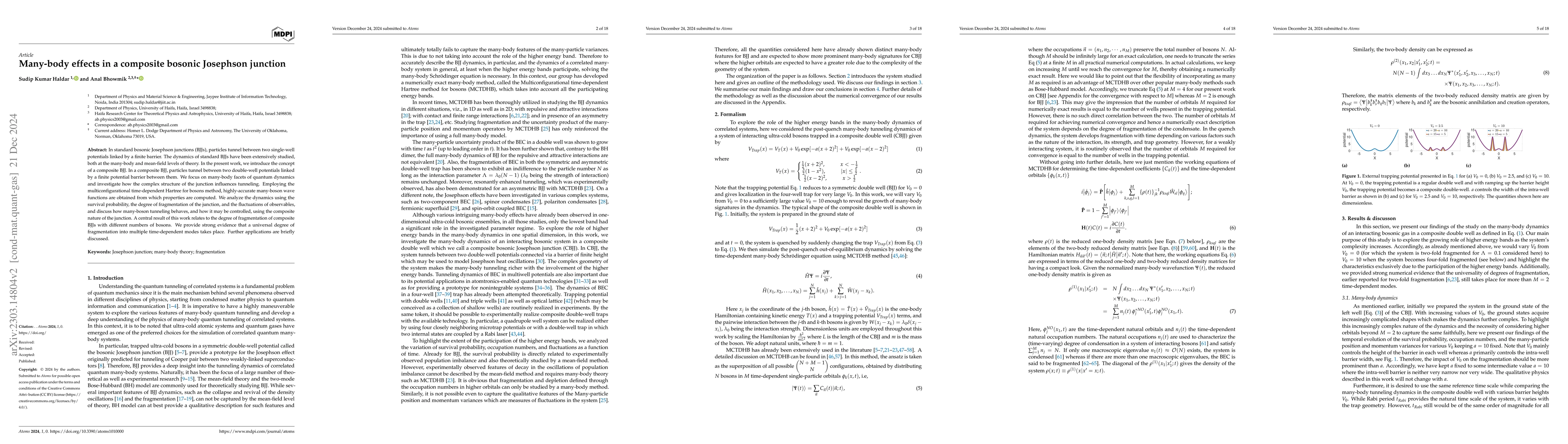 The out-of-equilibrium many-body quantum dynamics of an interacting Bose gas trapped in a one-dimensional composite double-well potential is studied by solving the many-body Schr\"odinger equation numerically accurately by employing the multiconfigurational time-dependent Hartree for bosons (MCTDHB) method. The composite double-well is formed by merging two deformed harmonic wells having a hump at their centre. We characterised the dynamics by the time evolution of survival probability, fragmentation, and many-particle position and momentum variances. Our study demonstrates the prominent role played by the higher orbitals in the dynamics and thereby highlighted the necessity of a many-body technique like MCTDHB which can take into account all the relevant orbitals for the accurate description of complex many-body dynamics. Further, we showed that the universality of fragmentation with respect to the number of particles corresponding to a particular interaction strength is also exhibited by the higher-order orbitals. Therefore, it is a robust phenomenon not limited to systems that can be described by two orbitals only.