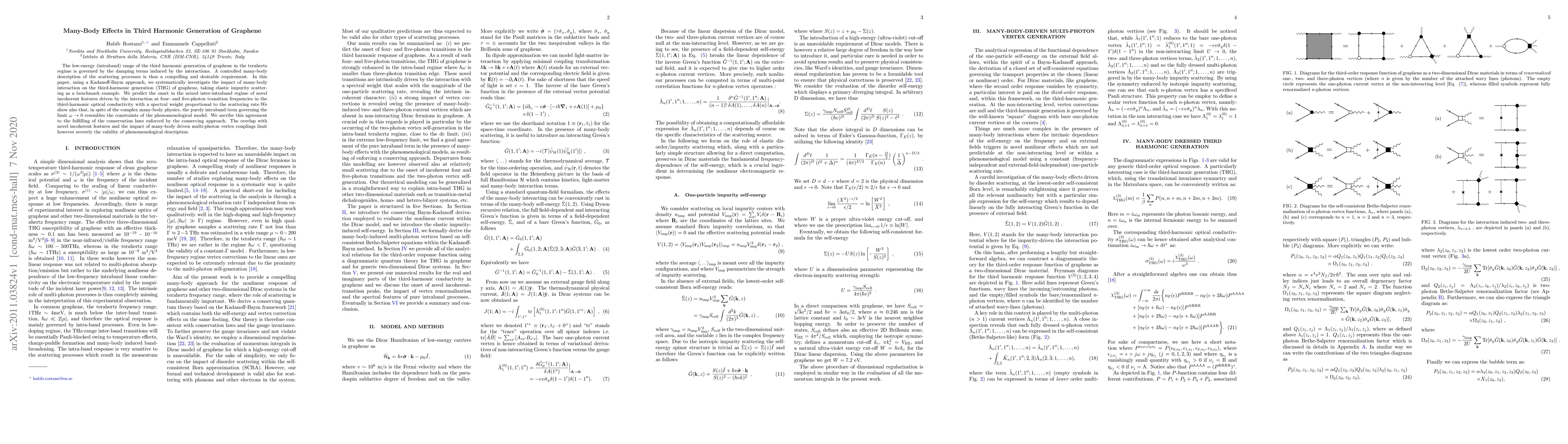 This paper investigates how many-body interactions impact third harmonic generation (THG) in graphene using a Kadanoff-Baym approach, predicting new incoherent features at higher photon transition frequencies due to scattering, while noting the intraband term's adherence to phenomenological models.