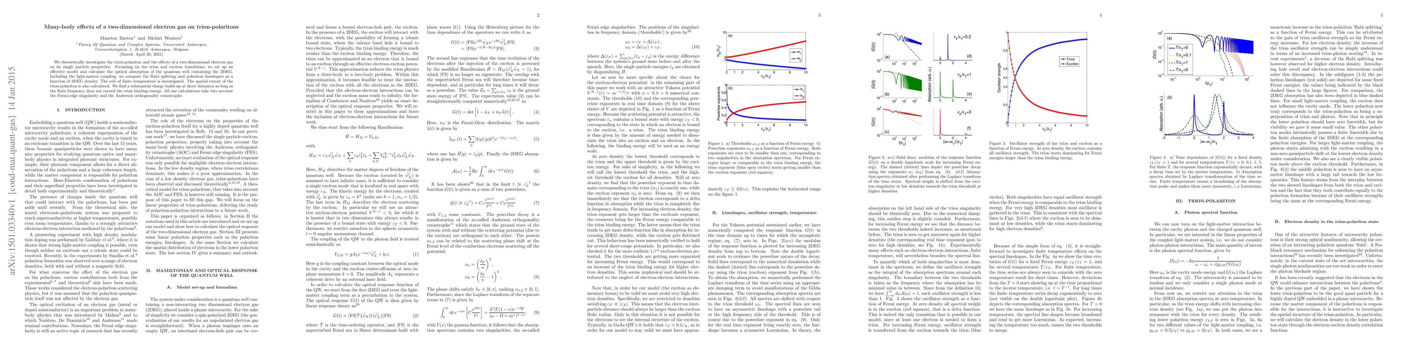 This paper investigates the impact of a two-dimensional electron gas on trion-polaritons, revealing significant charge accumulation near the gas and changes in optical absorption, Rabi splitting, and polariton lineshapes. The study considers finite temperature effects and the Fermi-edge singularity, finding that the trion binding energy constrains the Rabi frequency.