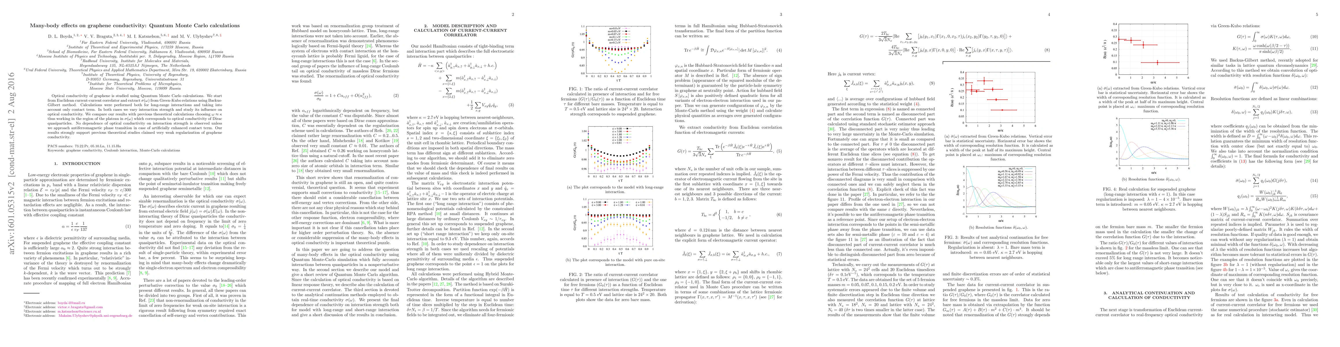 Optical conductivity of graphene is studied using Quantum Monte Carlo calculations. We start from Euclidean current-current correlator and extract $\sigma (\omega)$ from Green-Kubo relations using Backus-Gilbert method. Calculations were performed both for long-range interactions and taking into account only contact term. In both cases we vary interaction strength and study its influence on optical conductivity. We compare our results with previous theoretical calculations choosing $\omega \approx \kappa$ thus working in the region of the plateau in $\sigma(\omega)$ which corresponds to optical conductivity of Dirac quasiparticles. No dependence of optical conductivity on interaction strength is observed unless we approach antiferromagnetic phase transition in case of artificially enhanced contact term. Our results strongly support previous theoretical studies claimed very weak regularization of graphene conductivity.