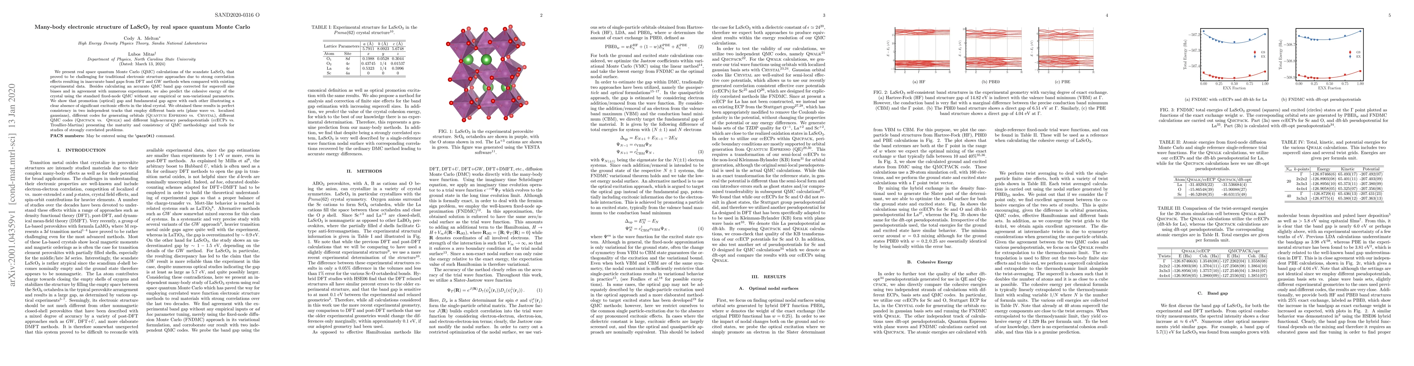 This paper uses real space quantum Monte Carlo (QMC) to accurately determine the electronic structure of LaScO$_3$, addressing strong correlation effects that traditional methods like DFT and $GW$ fail to capture. The study confirms the band gap and cohesive energy, showing no significant excitonic effects and validating the consistency of QMC across different computational frameworks.