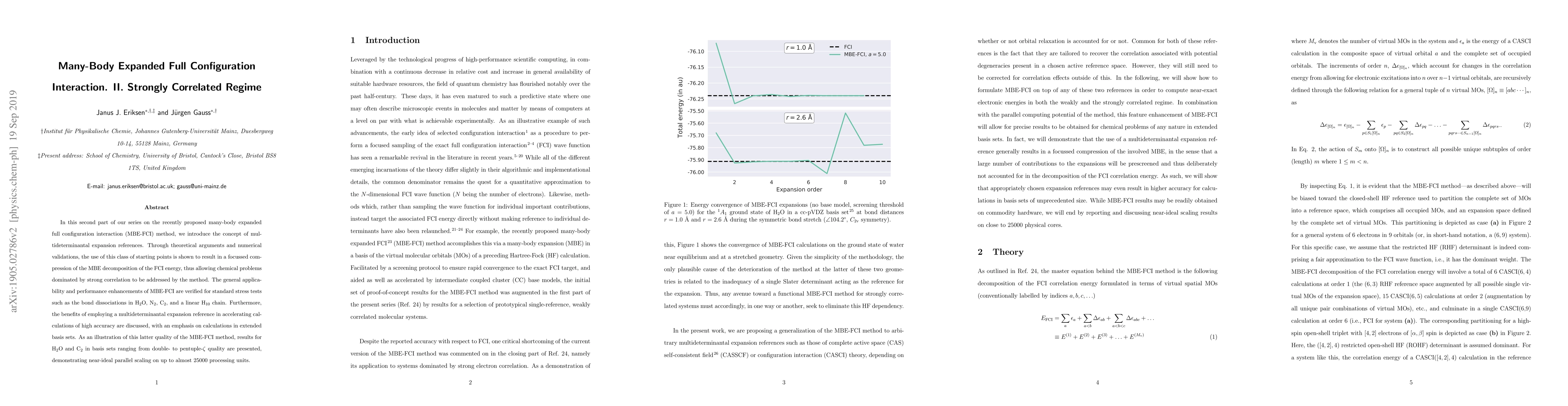 This paper extends the MBE-FCI method by introducing multideterminantal expansion references, which compress the MBE decomposition of the FCI energy, enabling the method to tackle strongly correlated chemical problems. The method's effectiveness is demonstrated through bond dissociation calculations and its scalability in extended basis sets, showcasing near-ideal parallel scaling on large processing units.
