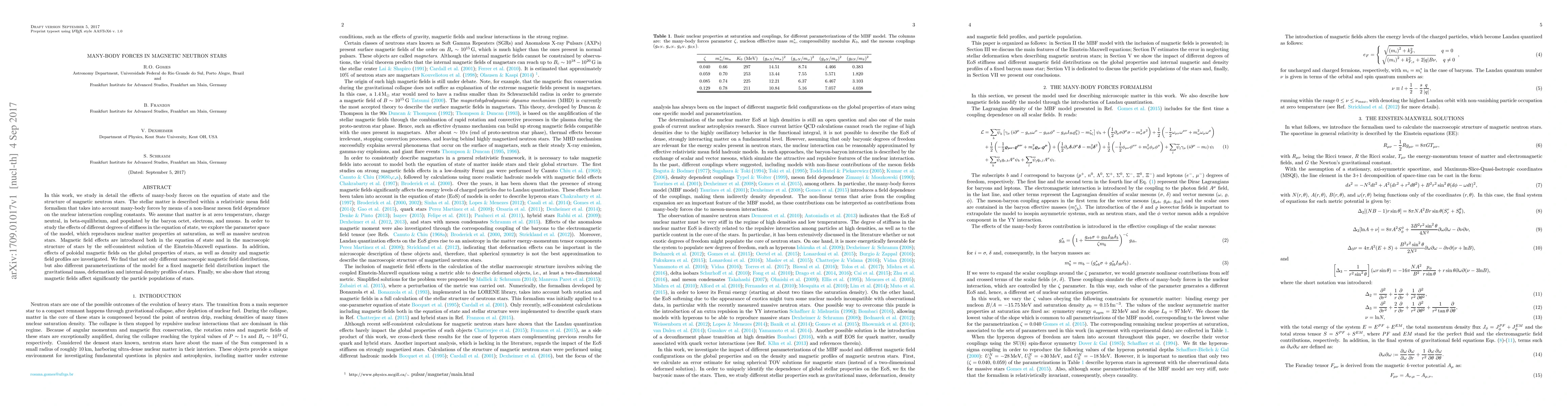In this work, we study in detail the effects of many-body forces on the equation of state and the structure of magnetic neutron stars. The stellar matter is described within a relativistic mean field formalism that takes into account many-body forces by means of a non-linear meson field dependence on the nuclear interaction coupling constants. We assume that matter is at zero temperature, charge neutral, in beta-equilibrium, and populated by the baryon octet, electrons, and muons. In order to study the effects of different degrees of stiffness in the equation of state, we explore the parameter space of the model, which reproduces nuclear matter properties at saturation, as well as massive neutron stars. Magnetic field effects are introduced both in the equation of state and in the macroscopic structure of stars by the self-consistent solution of the Einstein-Maxwell equations. In addition, effects of poloidal magnetic fields on the global properties of stars, as well as density and magnetic field profiles are investigated. We find that not only different macroscopic magnetic field distributions, but also different parameterizations of the model for a fixed magnetic field distribution impact the gravitational mass, deformation and internal density profiles of stars. Finally, we also show that strong magnetic fields affect significantly the particle populations of stars