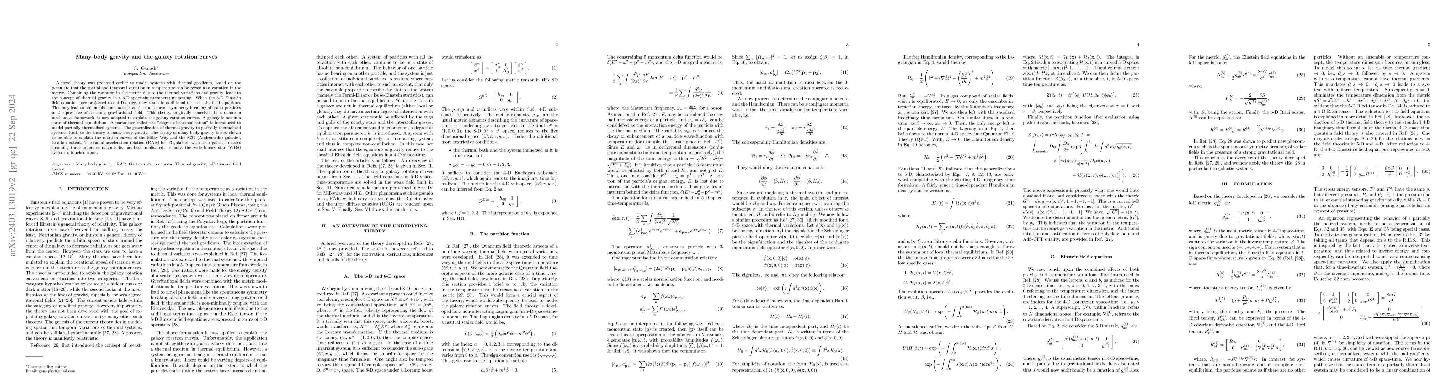 This paper proposes a novel many-body gravity theory, rooted in thermal gravity, to explain galaxy rotation curves without invoking dark matter. It adapts a 5-D space-time-temperature framework to model galaxies as partially thermalized systems, successfully reproducing observed rotation curves and the radial acceleration relation for a wide range of galactic masses.
