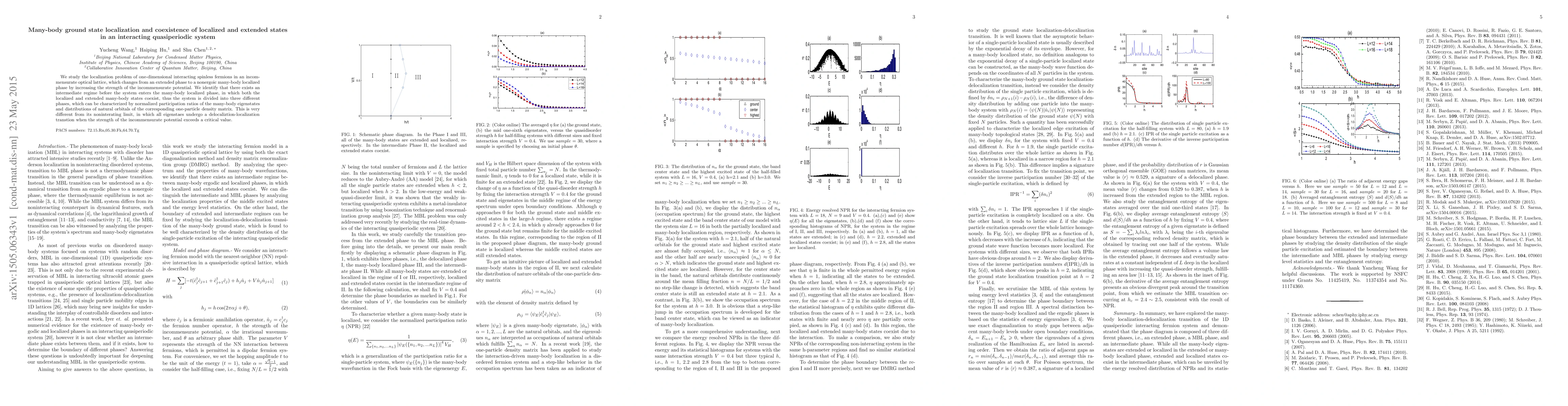This paper investigates the localization of interacting fermions in an incommensurate optical lattice, revealing that it transitions from an extended to a many-body localized phase. An intermediate regime is found where both localized and extended states coexist, dividing the system into three distinct phases.