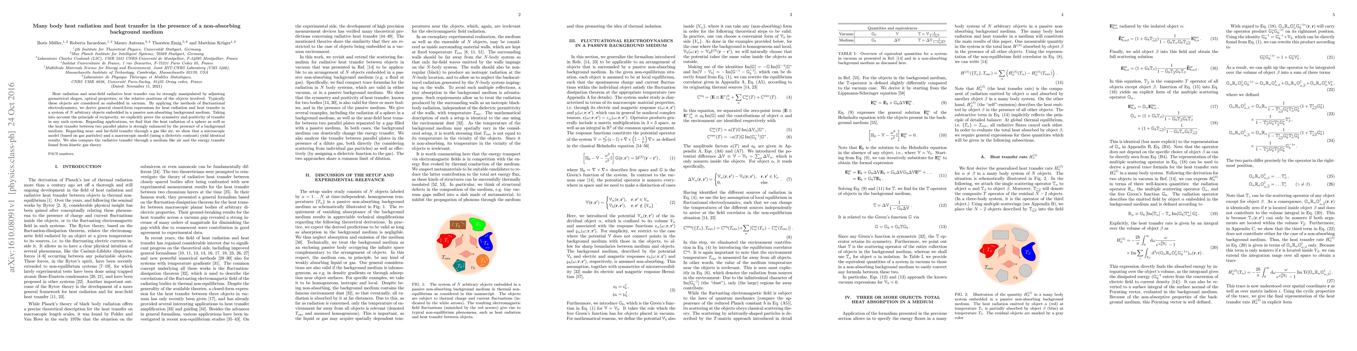 This paper derives closed-form expressions for heat radiation and transfer in systems of $N$ objects within a non-absorbing medium using fluctuational electrodynamics, proving symmetry and positivity. It finds enhanced heat radiation and transfer in such environments, and shows that microscopic and macroscopic models yield identical results for radiative transfer through a gas medium.