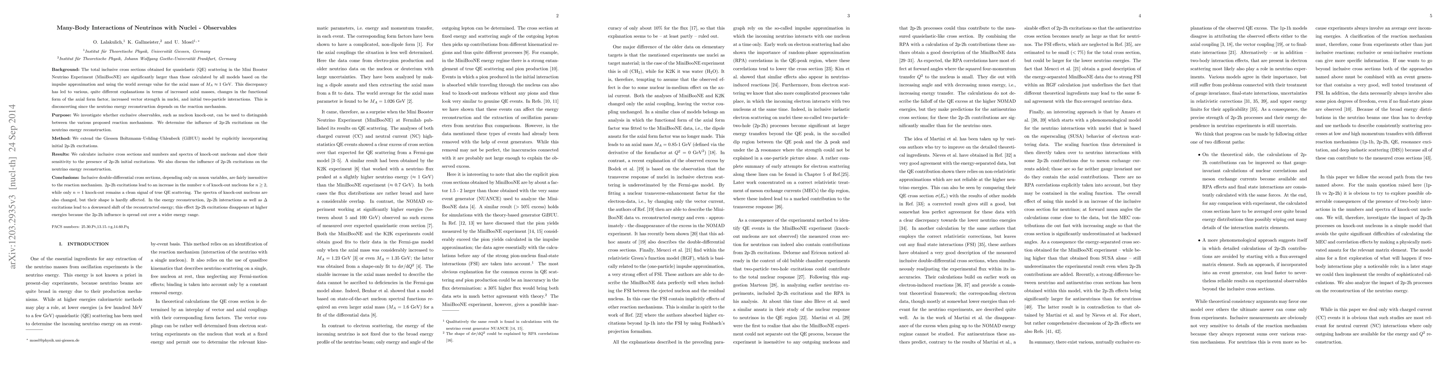 Background: The total inclusive cross sections obtained for quasielastic (QE) scattering in the Mini Booster Neutrino Experiment (MiniBooNE) are significantly larger than those calculated by all models based on the impulse approximation and using the world average value for the axial mass of $M_A \approx 1 \GeV$. This discrepancy has led to various, quite different explanations in terms of increased axial masses, changes in the functional form of the axial form factor, increased vector strength in nuclei, and initial two-particle interactions. This is disconcerting since the neutrino energy reconstruction depends on the reaction mechanism. Purpose: We investigate whether exclusive observables, such as nucleon knock-out, can be used to distinguish between the various proposed reaction mechanisms. We determine the influence of 2p-2h excitations on the energy reconstruction. Method: We use the Giessen Boltzmann--Uehling--Uhlenbeck (GiBUU) model to predict numbers and spectra of knock-out nucleons. The model is extended by incorporating a simple, but realistic treatment of initial 2p-2h excitations. Results: We show numbers and spectra of knock-out nucleons and show their sensitivity to the presence of 2p-2h initial excitations. We also discuss the influence of 2p-2h excitations on the neutrino energy reconstruction. Conclusions: 2p-2h excitations do lead to an increase in the number $n$ of knock-out nucleons for $n \ge 2$ while only the $n=1$ knock-out remains a clean signal of true QE scattering. The spectra of knock-out nucleons do also change, but their qualitative shape remains as before. In the energy reconstruction 2p-2h interactions lead to a downward shift of the reconstructed energy; this effect of 2p-2h excitations disappears at higher energies because the 2p-2h influence is spread out over a wider energy range.
