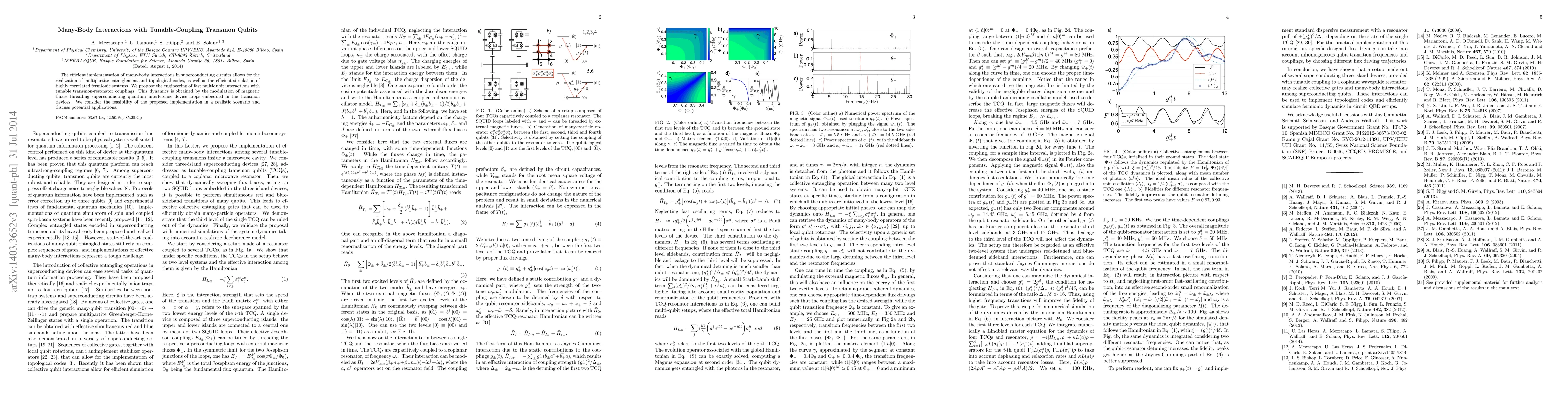 This paper proposes a method to engineer fast multiqubit interactions using tunable transmon-resonator couplings, achieved by modulating magnetic fluxes, to enable multipartite entanglement and efficient simulation of correlated fermionic systems. The feasibility of this approach in practical scenarios is considered, along with its potential applications.
