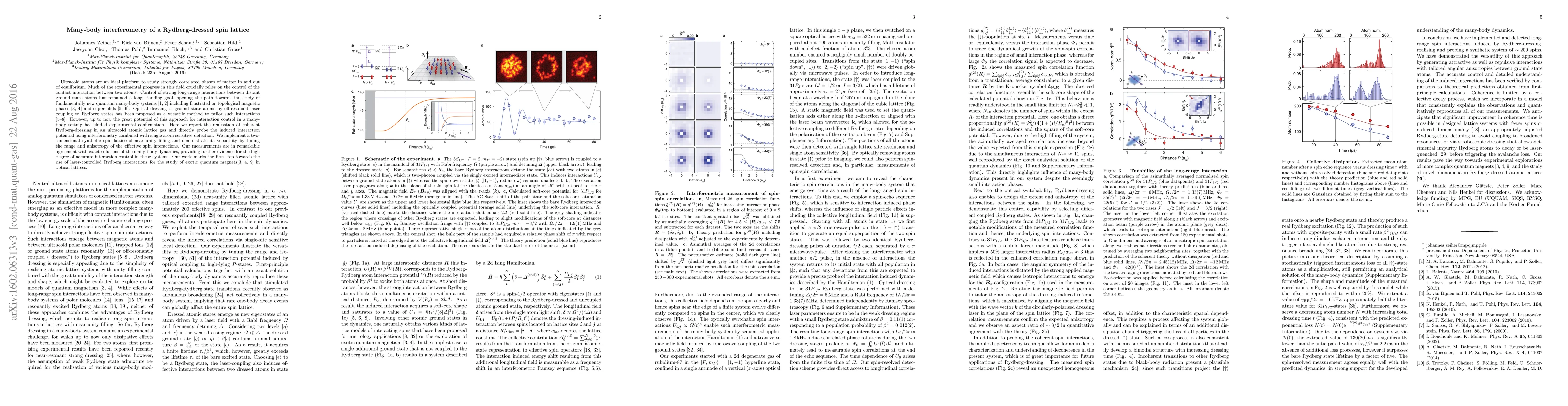 This paper demonstrates the realization of coherent Rydberg-dressing in an ultracold atomic lattice gas, using interferometry to probe the induced interaction potential and implement a synthetic spin lattice. The study shows precise control over spin interactions and identifies a collective decay process, marking a significant step towards studying exotic quantum magnets.