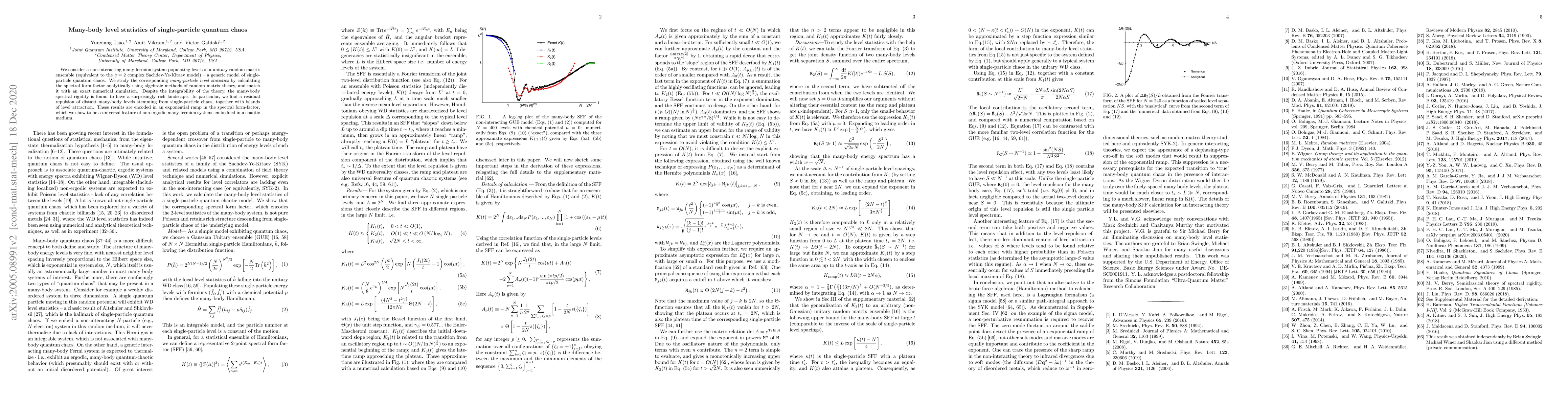 The research presents novel findings on the spectral rigidity of many-body systems in the context of single-particle quantum chaos, identifying an exponential ramp in the SFF as a universal feature. The σ-model approach offers a new technical tool for analyzing SFF in chaotic many-body systems.