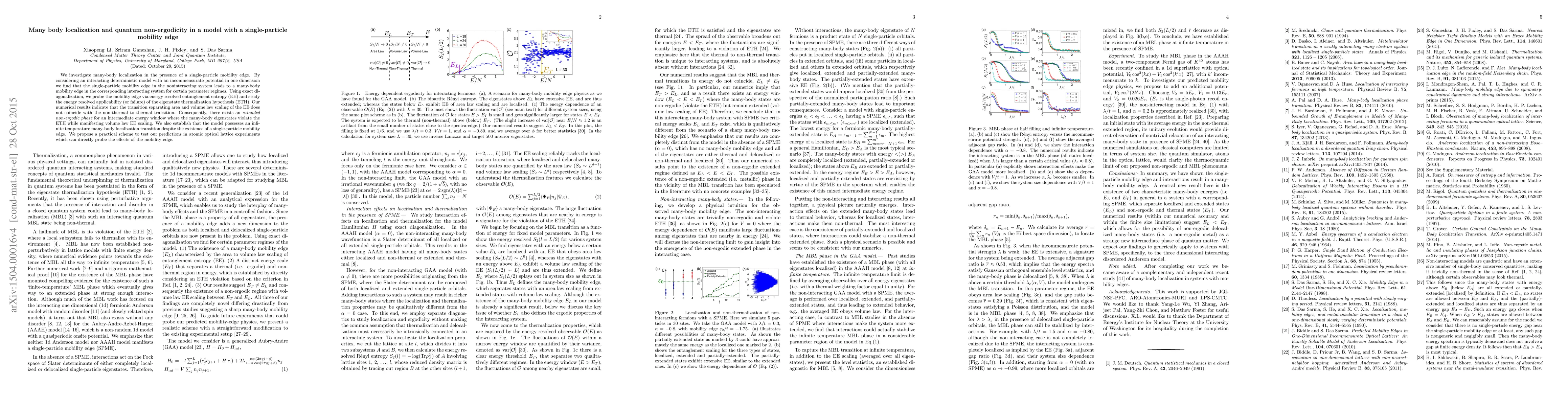 This paper studies many-body localization in a one-dimensional interacting system with a single-particle mobility edge, finding an extended non-ergodic phase where eigenstates violate the eigenstate thermalization hypothesis but exhibit volume law entanglement entropy scaling. The authors propose a method to test their findings in atomic optical lattice experiments.