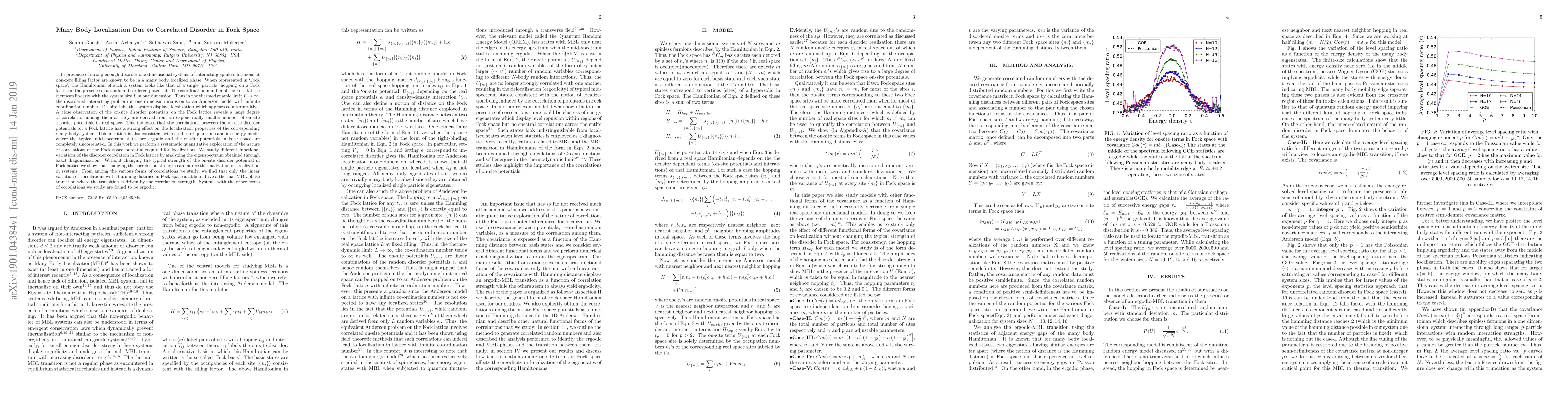 The paper introduces a detailed analysis of how correlations in Fock space disorder affect many-body localization, identifying a linear variation of correlations as critical for MBL transition.