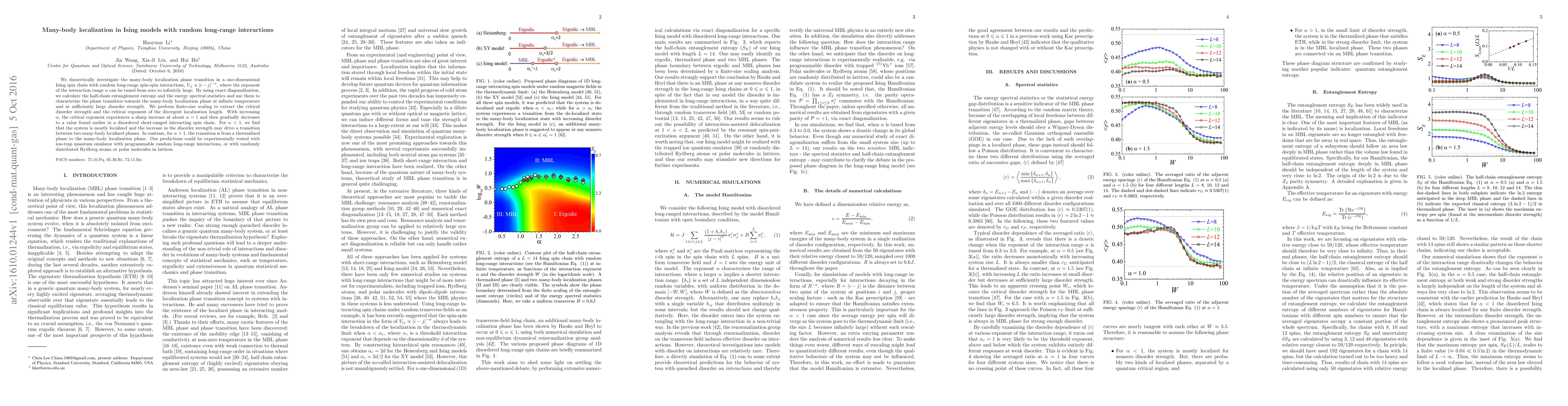This paper investigates the many-body localization phase transition in a one-dimensional Ising spin chain with tunable random long-range interactions. The study finds that the critical exponent for the transition sharply increases at $\alpha=1$ and transitions from a thermalized phase to a localized phase for $\alpha>1$.
